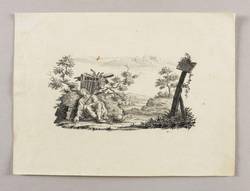Um 1800. Zeichnung / Federzeichnung, in schwarzer Tusche, auf Bütten. – Originale Künstlergrafik, von Josef Maria von Lindauer. – Unikat. – 14,5 x 19,5 cm (Blatt), 7,0 x 13,3 cm (Darstellung).