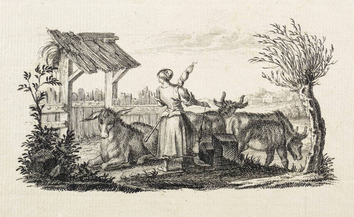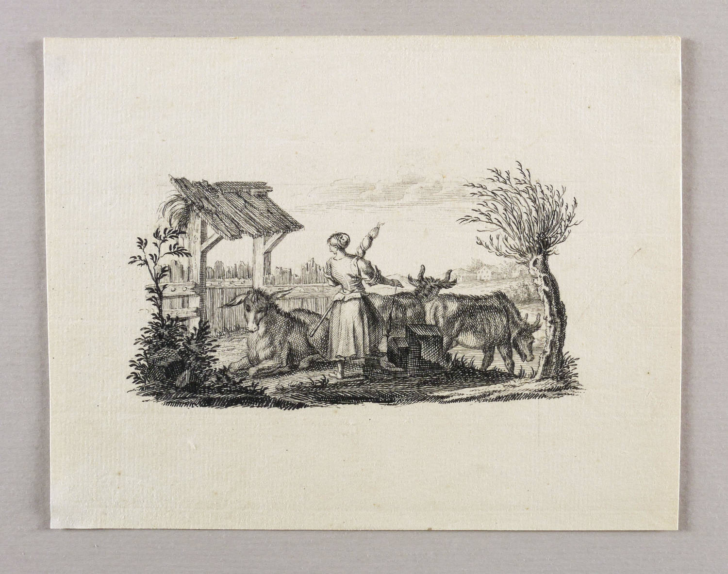 Lindauer, Josef Maria von (zugeschrieben). – „Bäuerin mit Esel und Rindern”.