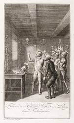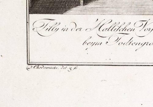 Chodowiecki, Daniel Nikolaus -  -  - Tilly in der Hallischen Vorstadt von Leipzig, beym Todtengräber