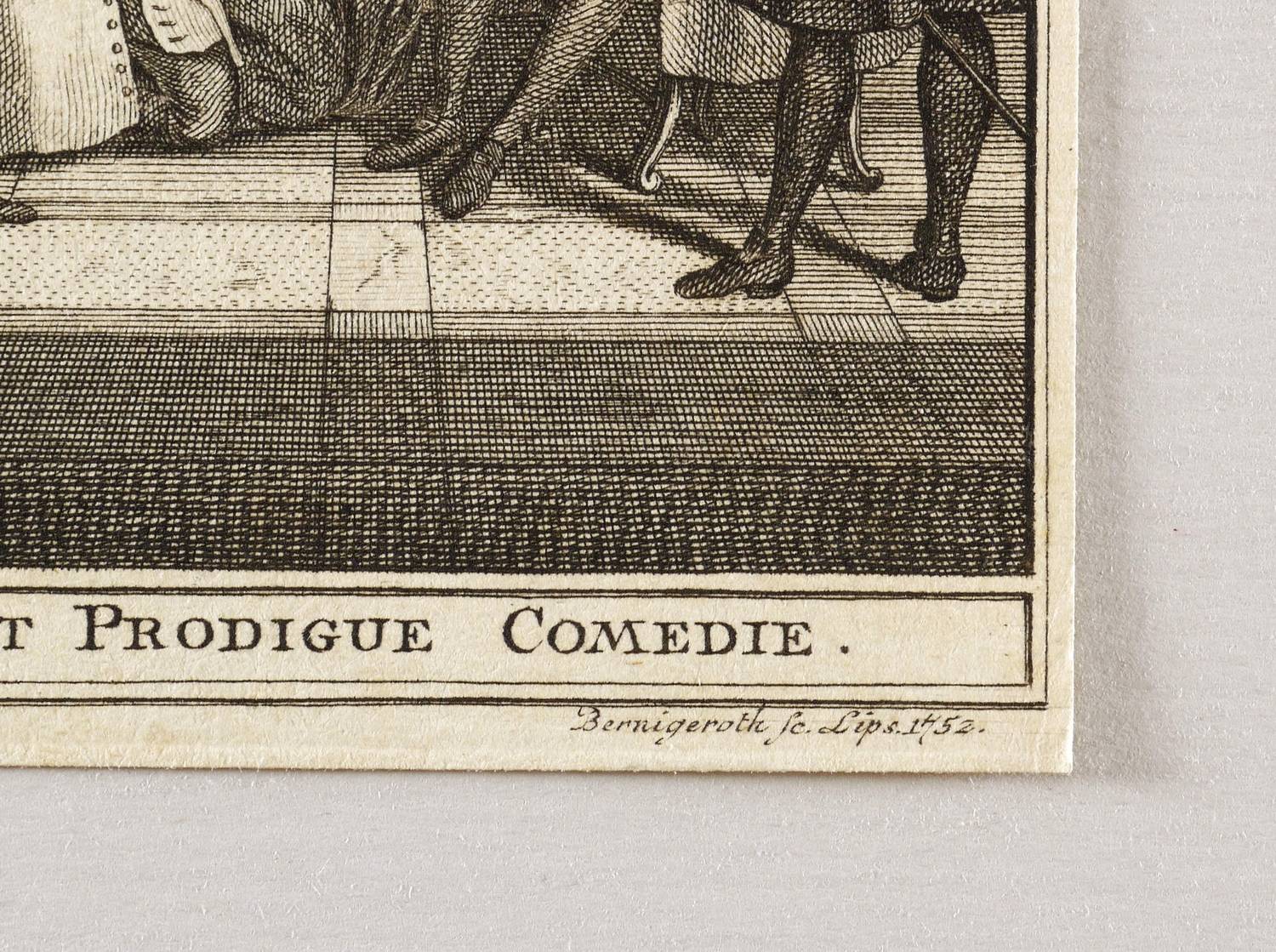 Aus: Oeuvres. de Mr. de Voltaire (Georg Conrad Walther 1752), Bd. 7. – Rechts unten signiert und datiert: ″Bernigeroth sc. Lips. 1752.″ – Blatt mit schmalem Rand um die Darstellung. Verso mit Montageresten. Sonst guter Zustand.