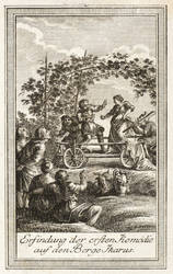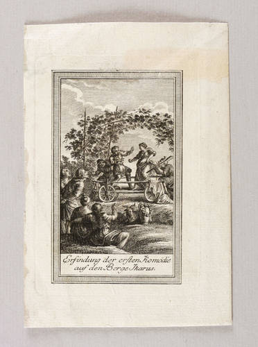 Bernigeroth, Johann Martin (zugeschrieben). – „Erfindung der ersten Komödie auf dem Berge Ikarus”.
