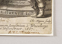 1667. Radierung / Kupferstich. – Historische Buchillustration, von Christian Hagens. – 16,6 x 10,6 cm (Darstellung), 18,0 x 10,6 cm (Blatt), 18,2 x 11,0 cm (Trägerkarton).