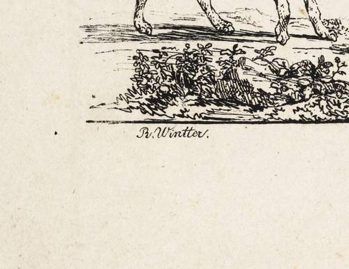 Jeweils links unterhalb der Darstellung signiert: ″R. Wintter.″ – Breitrandiges, an zwei Seiten unbeschnittenes Blatt. Verso geringe Montagespuren. Sonst aber guter Zustand.