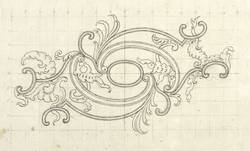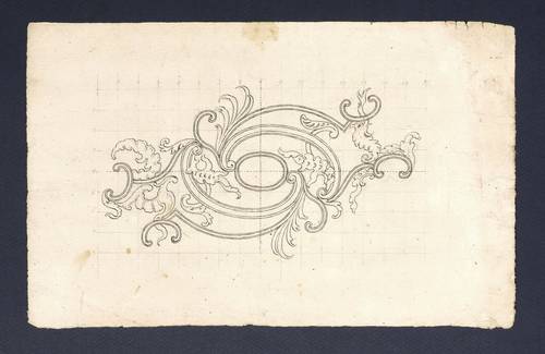 Wasserzeichen bekrönter Adler. Sammlerstempel. – Entwurf bzw. Vorlage für ein Ornament oder Dekor in einem architektonischen oder kunstgewerblichen Zusammenhang. Mit einem Linienraster (Quadrierung) für die Übertragung in größeres Format versehen. – Blatt mit leichten Altersspuren. Im Randbereich leicht angeschmutzt. Sonst guter Zustand.