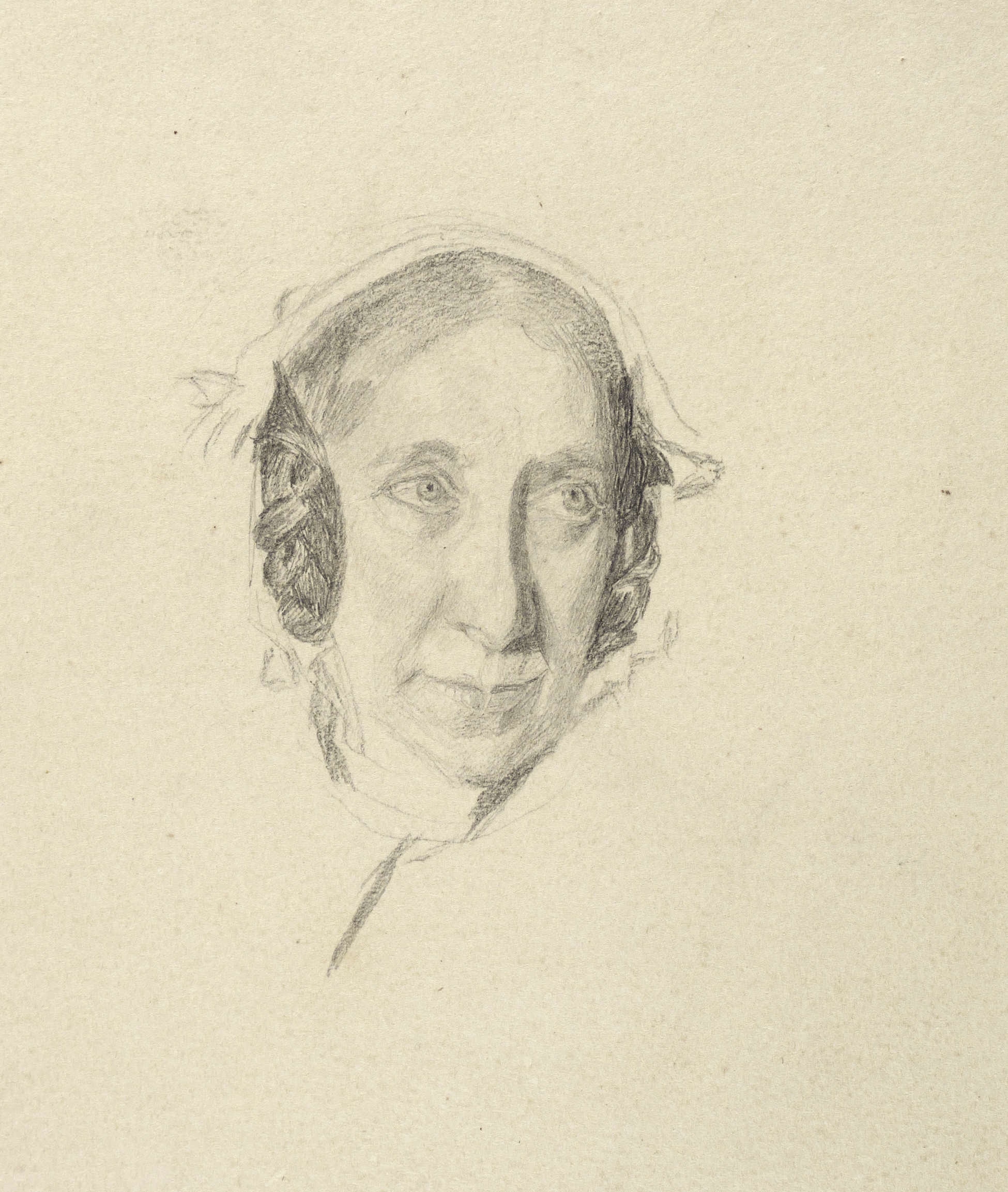 1835-1840. Zeichnung / Bleistiftzeichnung, auf gelbem Velin. – Originale Künstlergrafik, von Ernst Fischer. – Unikat. – 9,0 x 6,5 cm (Darstellung), 32 x 24,5 cm (Blatt).