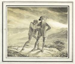 1817. Lithografie / Tonlithografie, in Schwarz, über ockerfarbener Tonplatte, auf Velin. – Von Mathias Christoph Hartmann. – 25,9 x 31,1 cm (Darstellung / ohne Schmuckrahmen), 31,5 x 36,8 cm (Darstellung / mit Schmuckrahmen), 36 x 47,5 cm (Blatt).