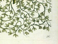 Aus: Johann Wilhelm Weinmann, Phytanthoza-Iconographia Oder Eigentliche Vorstellung Etlicher Tausend, So wohl Einheimisch- als Ausländischer, aus allen vier Welt-Theilen, in Verlauf vieler Jahre (...) gesammelter Pflantzen, Bäume, Stauden, Kräuter, Blumen, Früchten und Schwämme (Regensburg: Hieronymus Lentz 1737-1745), Bd. 3 (1742). – In der Platte rechts unten Signatur, rechts oben Tafel-Nr. "637", unten mittig ausführliche Inschrift: "a. Lens major, Lentille grande, Grosse Linsen. b. Lens vulgaris, Lentille, Linsen. c. Lentibulariar, seu Mille folium lenticulatu[m]. d. Lenticula aquatica trisulca, Wassergrütze. e. Lenticula palustris quadrfolia, Lentille de Marais, Vierblätterichte Linsen. f. Lenticula palustris vulgaris, Lentille a eau, Merr Linsen." – Bei der Herstellung der Tafeln arbeiteten die Augsburger Künstler Bartholomäus Seutter, Johann Jakob Haid und Johann Elias Ridinger zusammen. Die Kupfer wurden in einer für die Zeit revolutionären Weise farbig gedruckt und sodann partiell von Hand koloriert. Dabei fand der von Seutter weiterentwickelte Mezzotinto-Farbdruck des Niederländers Johannes Teyler Anwendung. – Das kräftige Büttenpapier sauber und frisch. Kontrastreiches wohlerhaltenes Kolorit. Insgesamt sehr guter Erhaltungszustand.