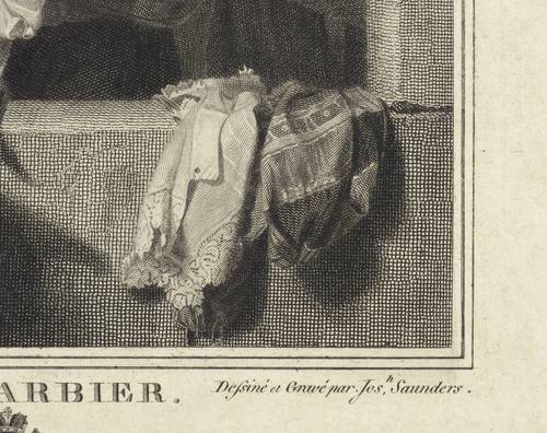 In der Platte rechts unten signiert: ″Dessiné et Gravé par Jos.h Saunders.″ Mittig Titel. Darunter bezeichnet: ″de L'Hermitage de S.M. Imperiale // ECOLE HOLLANDOISE″. – Schmaler Rand um die Platte. Links unten angerissene Ecke. Oben rechts winziger Eckenausriss. Durchgehend leicht knickspurig. Insgesamt mäßig guter Zustand.