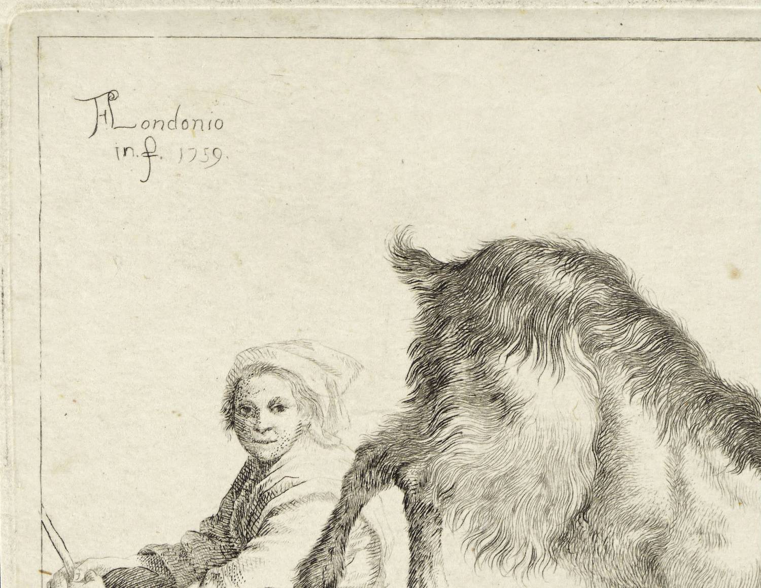 1759. Radierung / Strichätzung, auf kräftigem Büttenkarton. – Originale Künstlergrafik, von Francesco Londonio. – 17,1 x 13,3 cm (Darstellung / Einfassungslinie), 17,9 x 14,1 cm (Platte), 19 x 15 cm (Blatt).