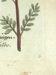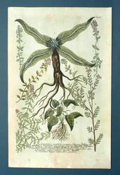 Aus: Johann Wilhelm Weinmann, Phytanthoza-Iconographia Oder Eigentliche Vorstellung Etlicher Tausend, So wohl Einheimisch- als Ausländischer, aus allen vier Welt-Theilen, in Verlauf vieler Jahre (...) gesammelter Pflantzen, Bäume, Stauden, Kräuter, Blumen, Früchten und Schwämme (Regensburg: Lentz 1745), Bd. IV. – Rechts unten Signatur, rechts oben Tafel-Nr. "916", unterhalb ausführliche Inschrift. – Bei der Herstellung der Tafeln arbeiteten die Augsburger Künstler Bartholomäus Seutter, Johann Jakob Haid und Johann Elias Ridinger zusammen. Die Kupfer wurden in einer für die Zeit revolutionären Weise farbig gedruckt und sodann partiell von Hand koloriert. Dabei fand der von Seutter weiterentwickelte Mezzotinto-Farbdruck des Niederländers Johannes Teyler Anwendung. – Das kräftige Büttenpapier leicht gebräunt. Sonst guter Erhaltungszustand.