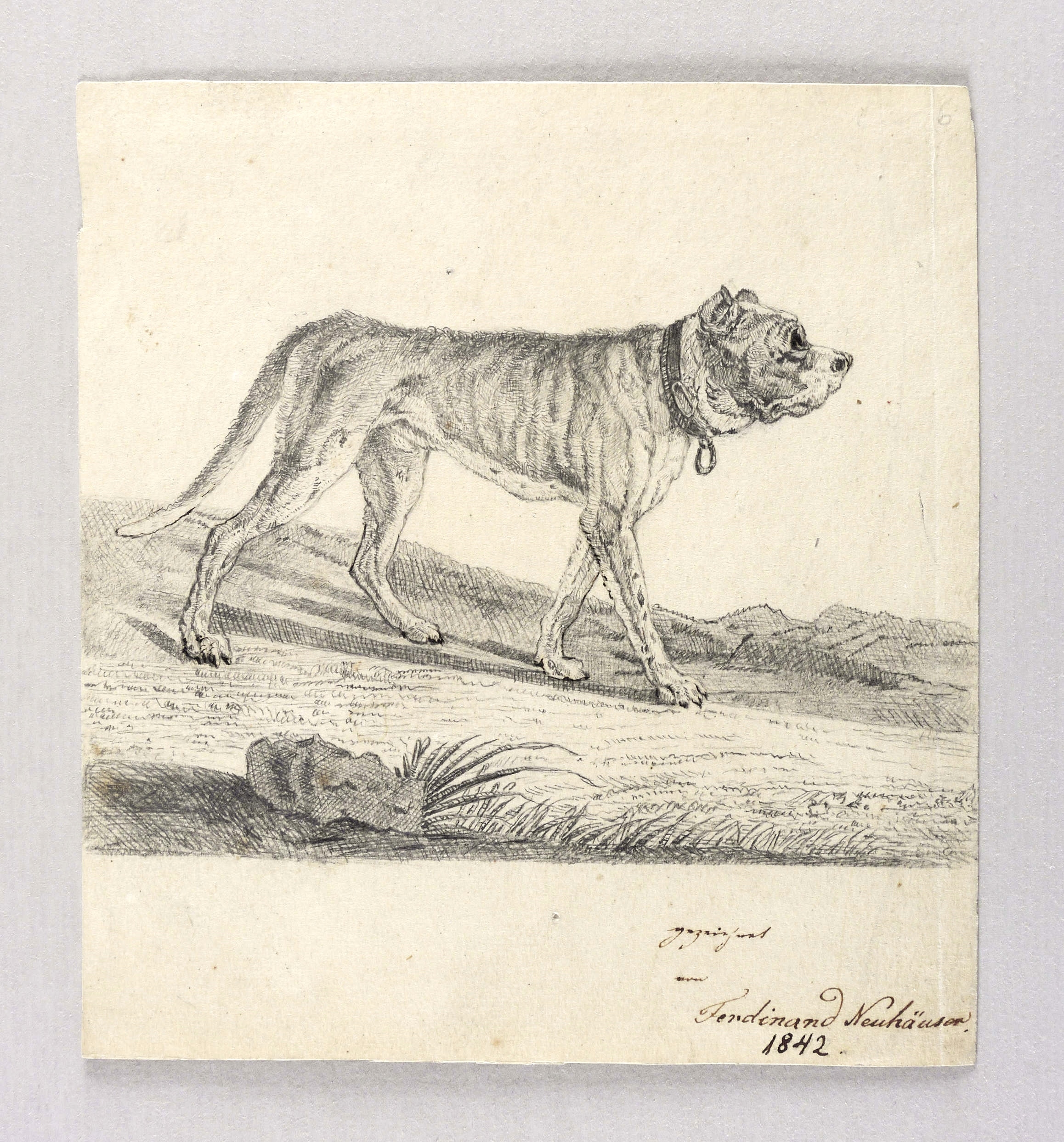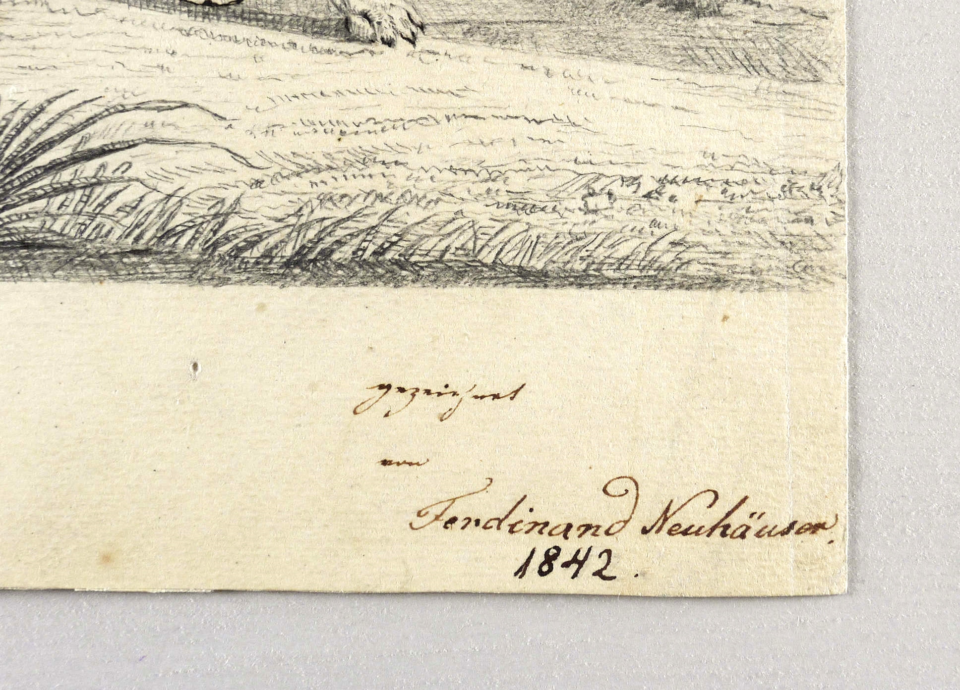 1842. Zeichnung / Bleistiftzeichnung, auf gelblichem Papier. – Originale Künstlergrafik, von Ferdinand Neuhäuser. – Unikat. – 16,5 x 15,0 cm (Blatt).