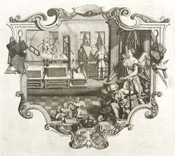 1751. Radierung / Kupferstich. – Historische Buchillustration, von Jonas Haas. – 21,5 x 21,5 cm (Blatt), 16,2 x 18,1 cm (Darstellung).