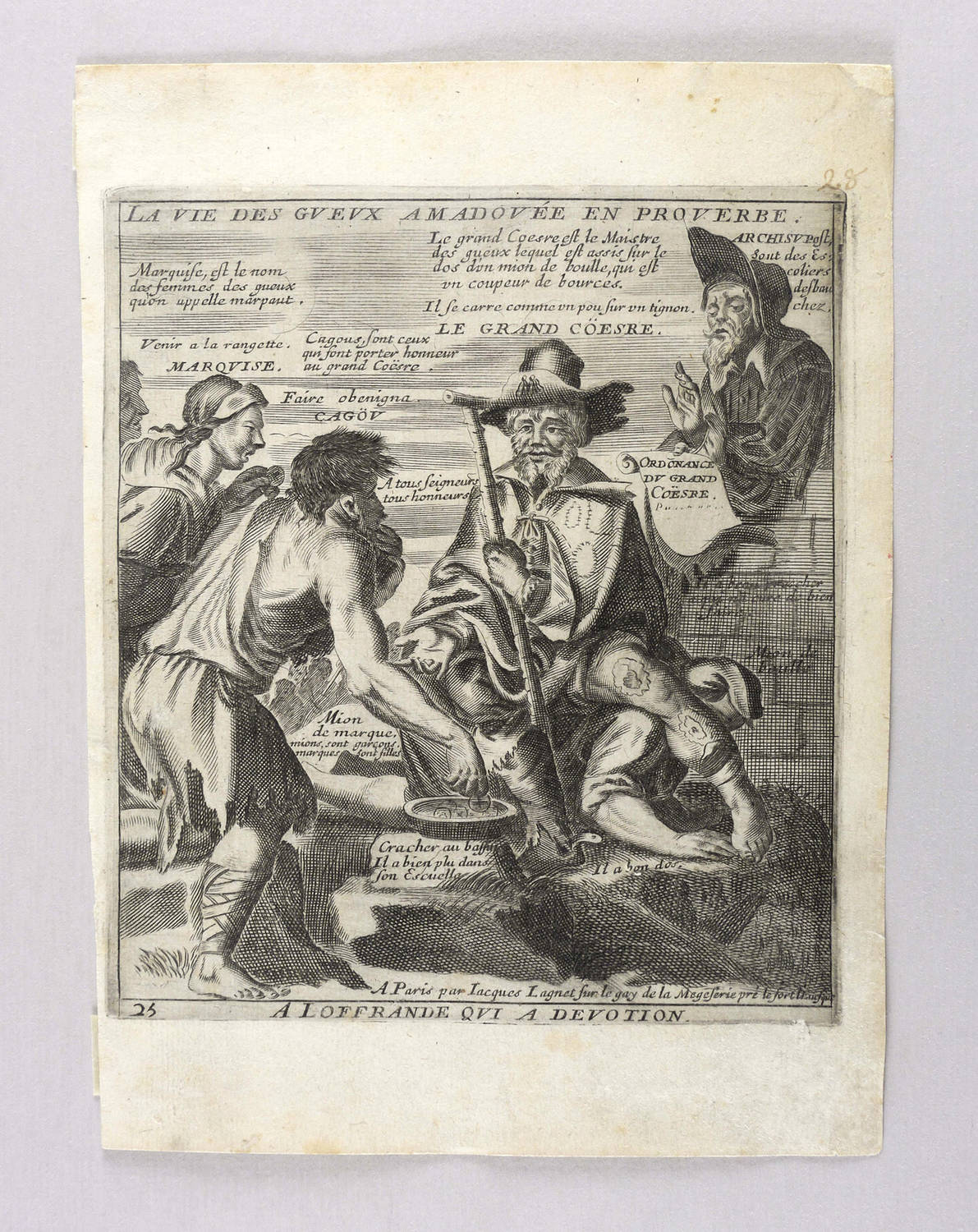 Aus: Jacques Lagniet, Recueil des plus illustres proverbes (Paris: Jacques Lagniet 1657-1663), Bd. 1-4[5]. – In der Platte unterhalb der Darstellung betitelt: ″A Loffrande qui a devotion″. Dazu nummeriert: ″25″. – Blatt verso mit geringen Montageresten und Sammlungsstempeln. Sonst aber guter Zustand.
