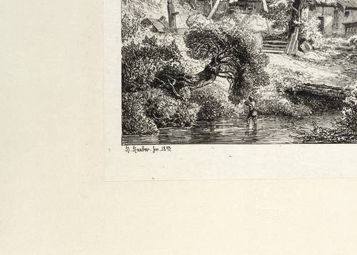 Aus: Radir-Club München [Hrsg.], Radirungen (München: L. A. Montmorillon 1843), Heft 1. – Links unten signiert und datiert: ″H. Hueber. fec. 1843″. Mit Trockenstempel des Münchner Radiervereins. – Blatt mit zwei kleineren Einrissen im linken und rechten Rand. Sonst aber guter Zustand.