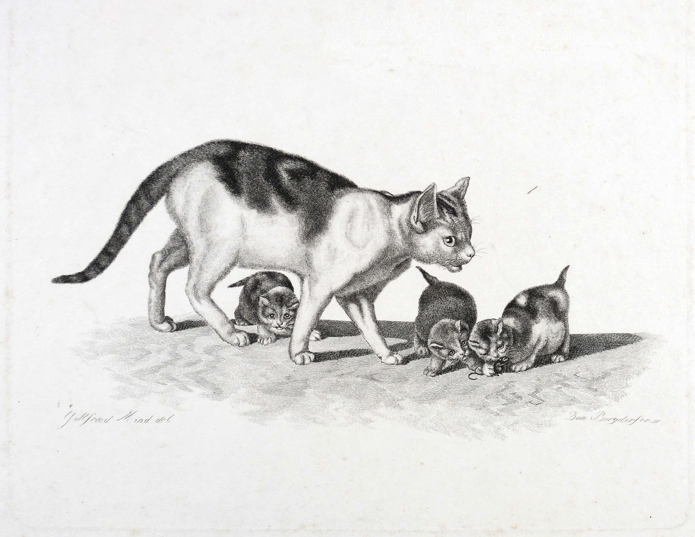 Mind, Gottfried (nach). – Daniel David Burgdorfer. – „Katze mit drei Jungen”.