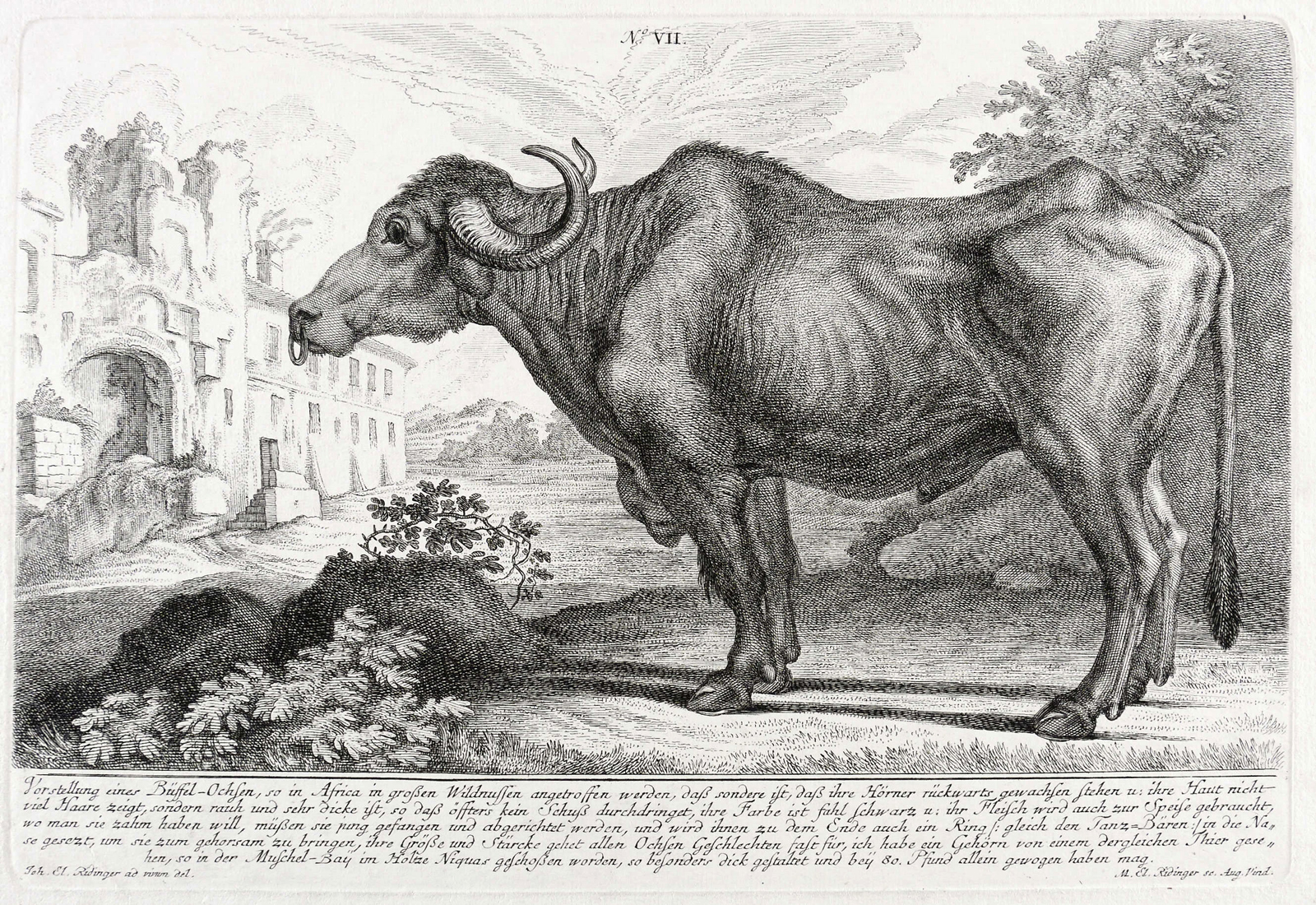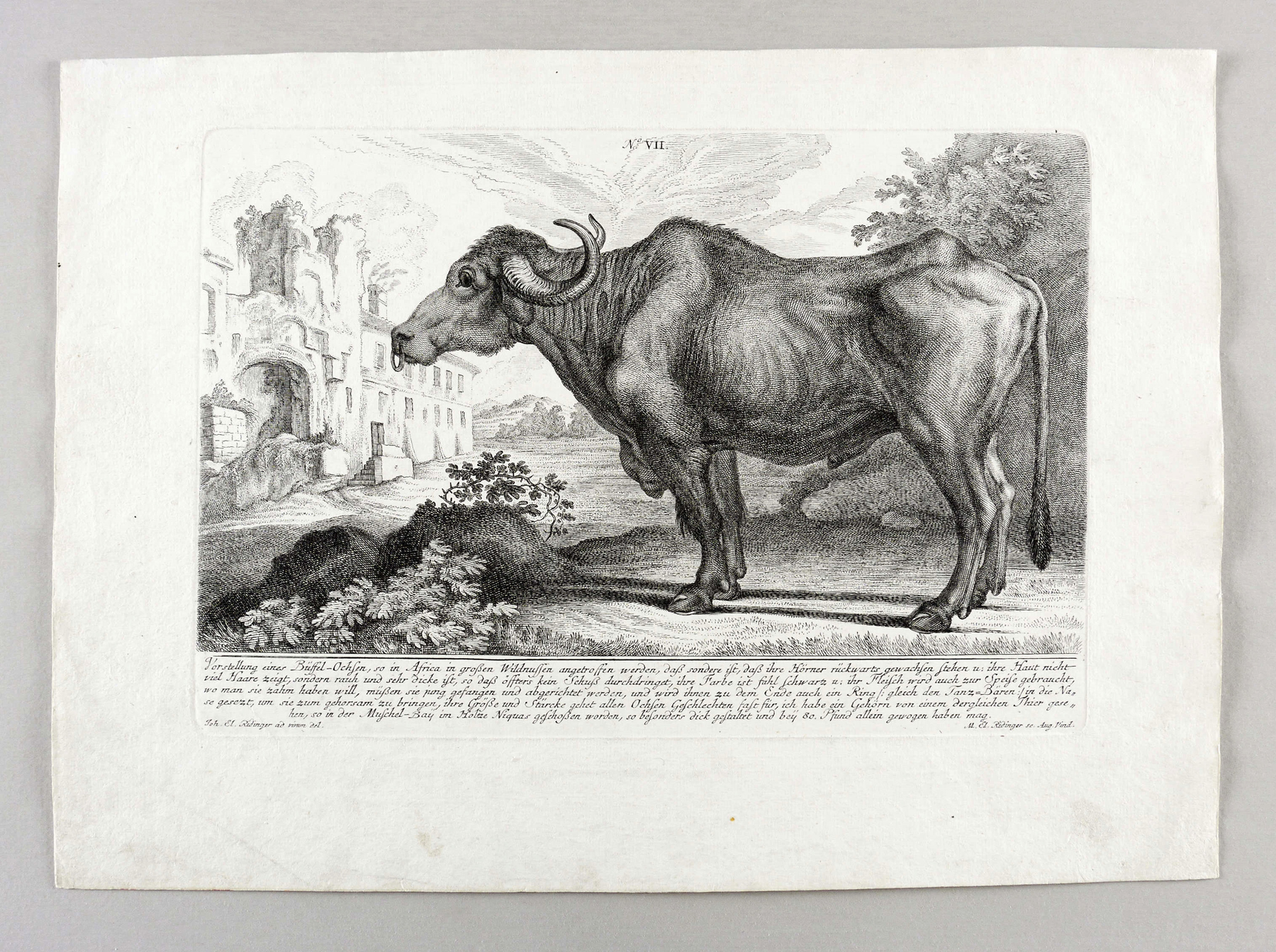 Ridinger, Martin Elias. – Kaffernbüffel. – nach Johann Elias Ridinger. – „Vorstellung eines Büffel-Ochsen”.