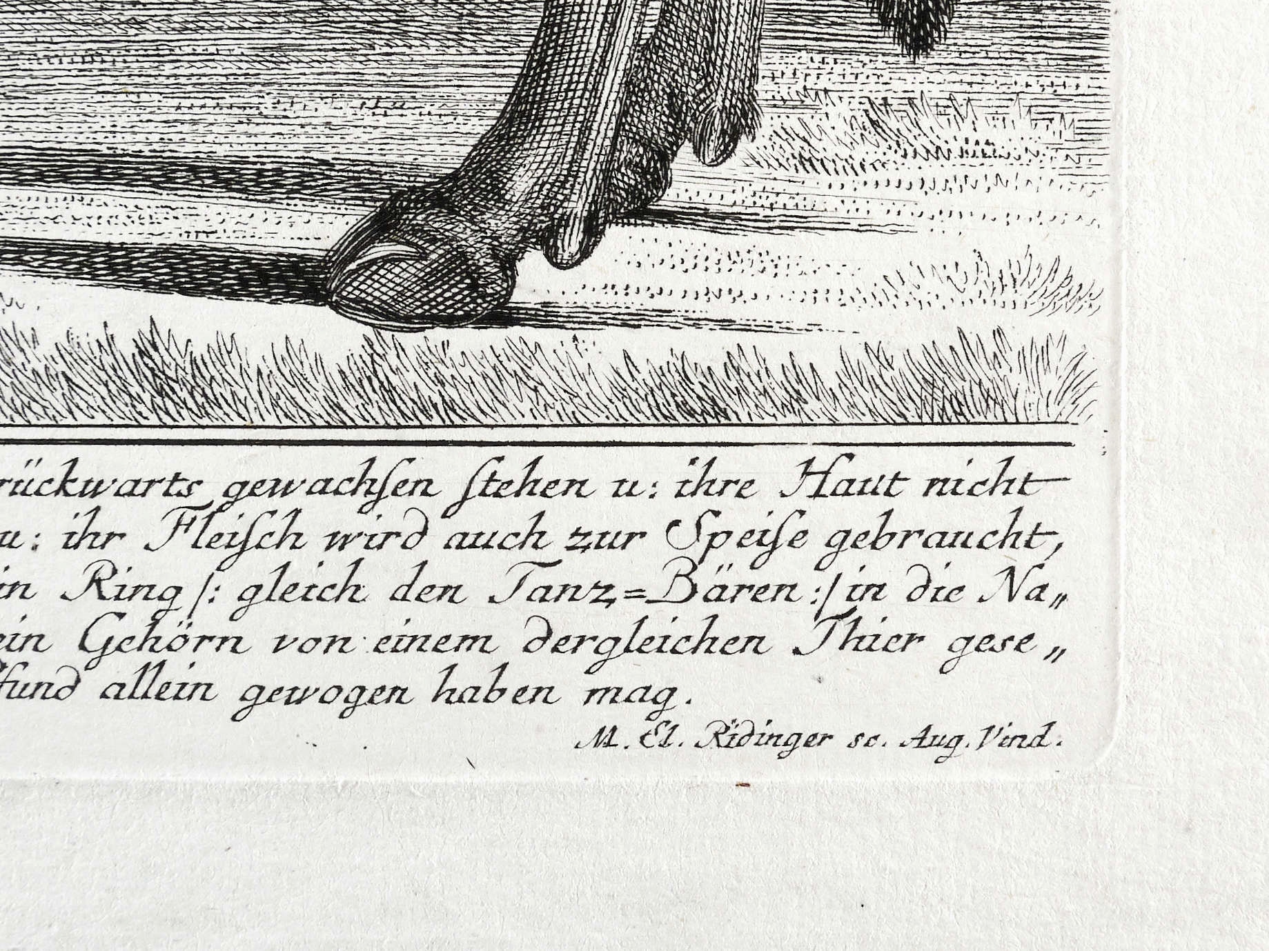 Thienemann 535. – Rechts unten signiert: ″M. El. Ridinger sc. Aug. Vind.″ Unterhalb der Darstellung Beschreibung und oben nummeriert: ″N.o VII.″ – Blatt mit leichten Lagerspuren und vereinzelte schwache Flecken. Insgesamt aber guter Zustand.