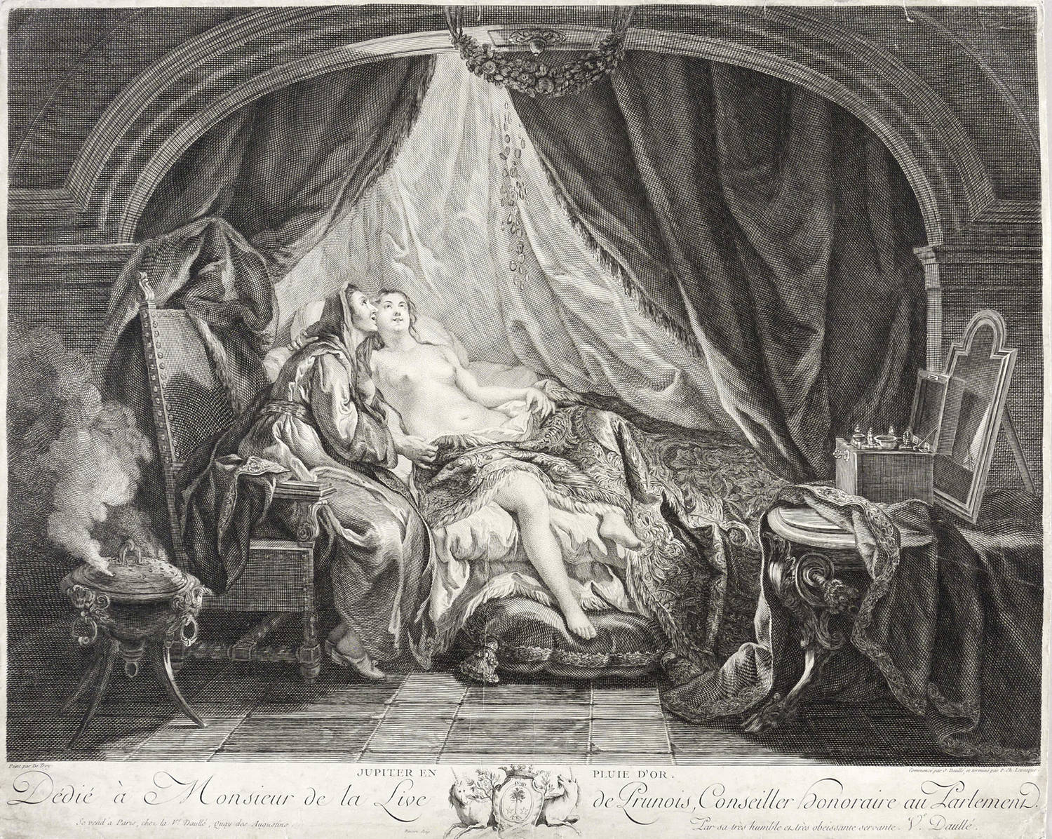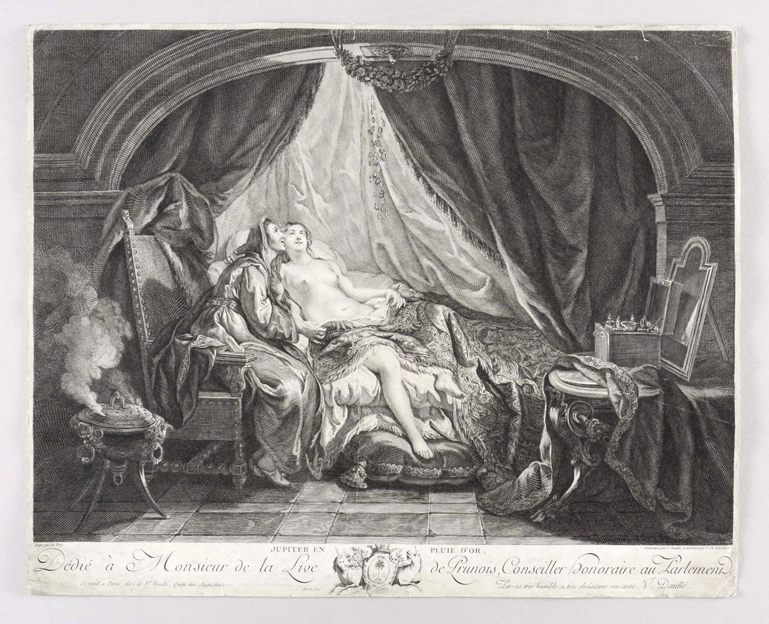 Jean Daullé (1703 Abbeville - 1763 Paris). Französischer Kupferstecher. Sohn eines Silberschmiedes. Eine erste Einführung in die Kupferstecherkunst erhielt er von einem dilettierenden Mönch Dom Robart. Später dann war Daullé Schüler von Robert Hecquet in Paris. Seine früheste Arbeit ist ein Porträtstich nach de Troy von 1732. Mit einem Porträt der Catherine Mignard von 1735 erlangte er die Aufmerksamkeit von Hyacinthe Rigaud und wurde von diesem beschäftigt. Mit einem Porträt des Letzteren debütierte er 1742 in der Akademie. Später soll er geschäftsmäßig, eher flüchtig gearbeitet haben.