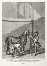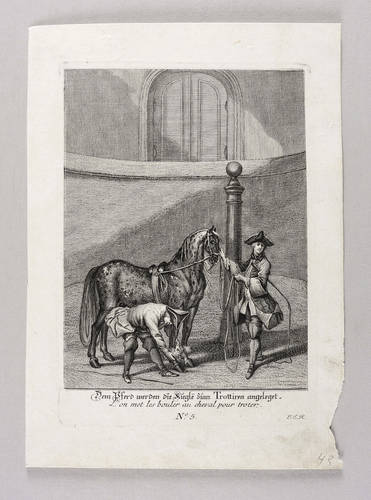 Ridinger, Johann Elias - Kleine Reitschule - Kleine Reitschule - Dem Pferd werden die Kugle[n] zum Trottiren angelegt