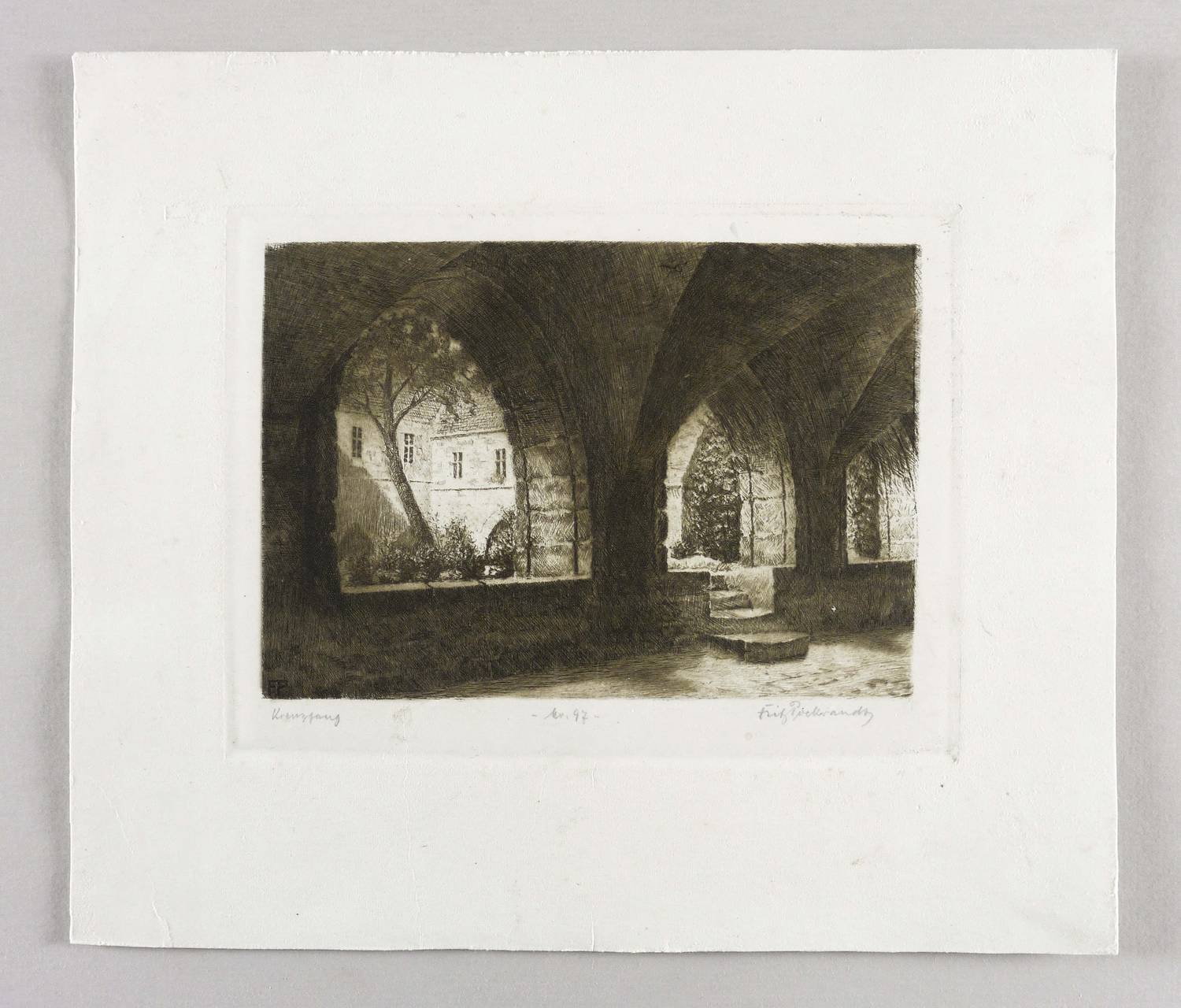 Rechts unten handschriftlich signiert und links betitelt. Mittig bezeichnet: ″Nr. 97″. – Blatt schwach angeschmutzt und teils leicht berieben. Ober und untere rechte Ecke leicht geknickt. Insgesamt etwas unfrischer Zustand.