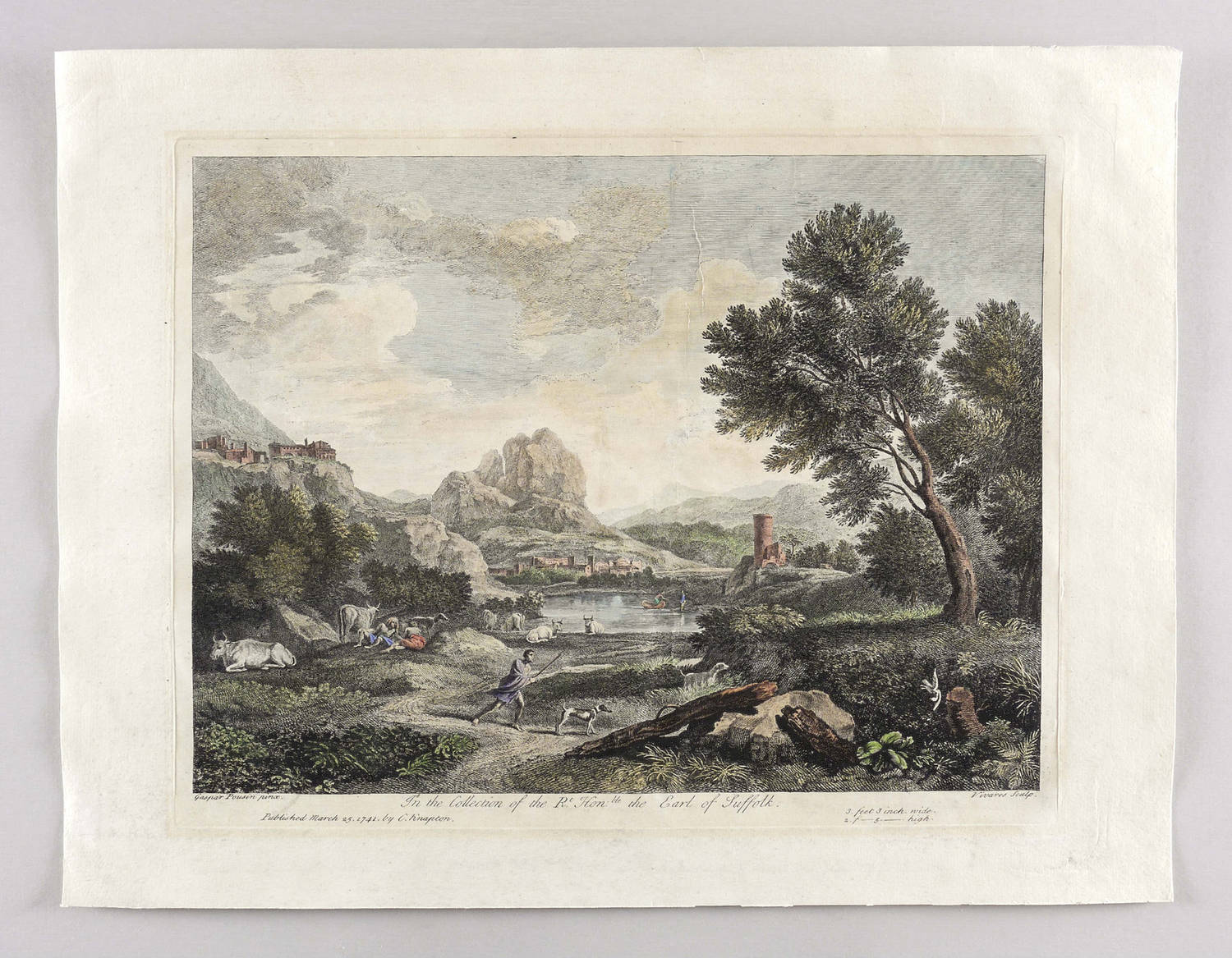 1741. Radierung / Kupferstich, in Schwarz, partiell ankoloriert. – Originale Künstlergrafik, von Francois Vivares. – 28,5 x 38,1 cm (Darstellung), 39 x 50 cm (Blatt), 31,0 x 39,7 cm (Platte).