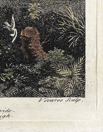 Rechts unten signiert: ″Vivares sculp.″. Links unterhalb der Darstellung Verlegeradresse mit Datierung. – Kaum wahrnehmbare restaurierte Fehlstelle innerhalb der Darstellung. Insgesamt mäßig guter Zustand.