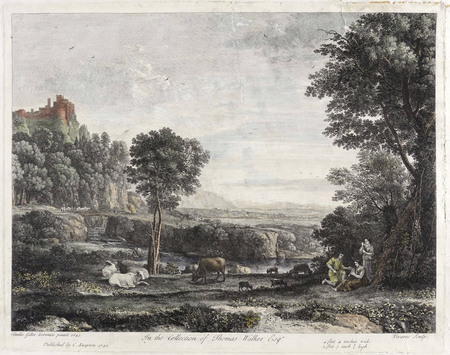 1741. Radierung / Strichätzung, in Schwarz, partiell ankoloriert. – Originale Künstlergrafik, von Francois Vivares. – 31,8 x 40,4 cm (Platte), 29,2 x 38,9 cm (Darstellung), 38 x 51 cm (Blatt).