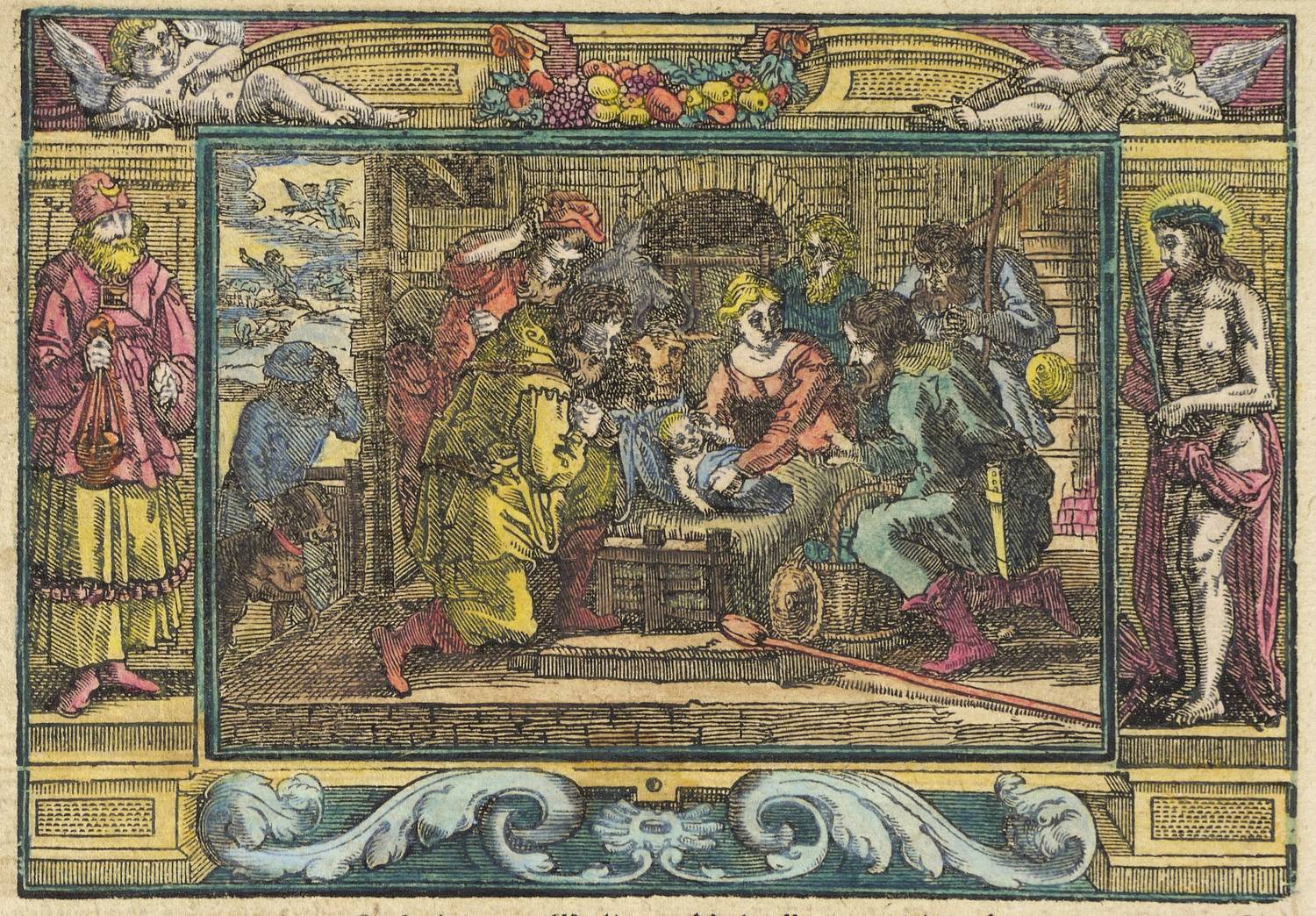 1656. Holzschnitt, in Schwarz, aquarelliert, auf Bütten. – Historische Buchillustration, von Deutsch (17. Jh.). – 11,1 x 16,0 cm (Darstellung / Einfassungslinie), 36 x 23 cm (Blatt).