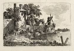 Nathe, Christoph. – „Flusslandschaft mit einem Mauerturm und einer Windmühle”.