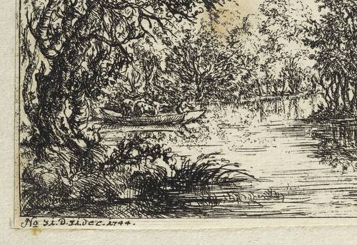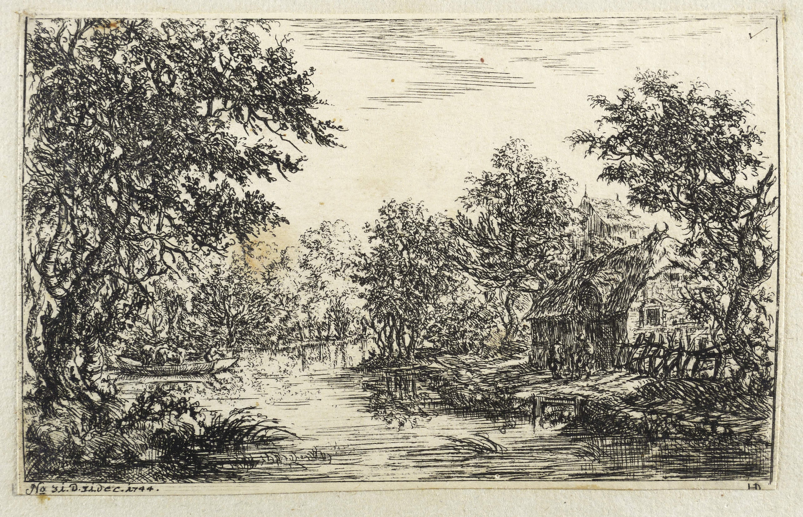 1744. Radierung / Strichätzung. – Originale Künstlergrafik, von Christian Ludwig von Hagedorn. – 8,4 x 13,7 cm (Darstellung / Einfassungslinie), 8,8 x 13,9 cm (Blatt), 11,5 x 16,5 cm (Trägerblatt).