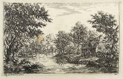 Hagedorn, Christian Ludwig von. – „Flusslandschaft mit Fischerhütte”.