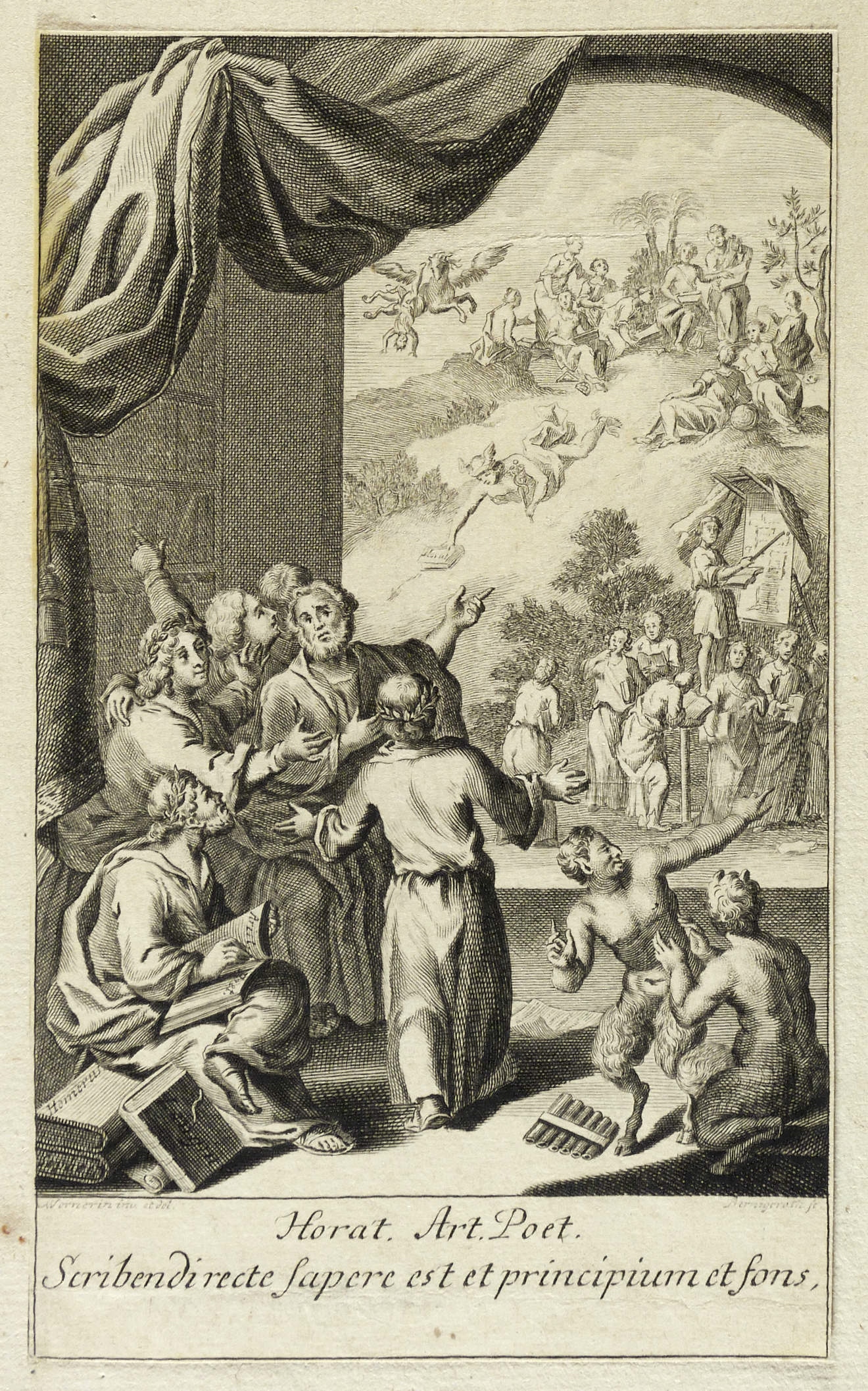 Bernigeroth, Johann Martin. – De arte poetica (Horaz). – „Poeten vor dem Parnass”.