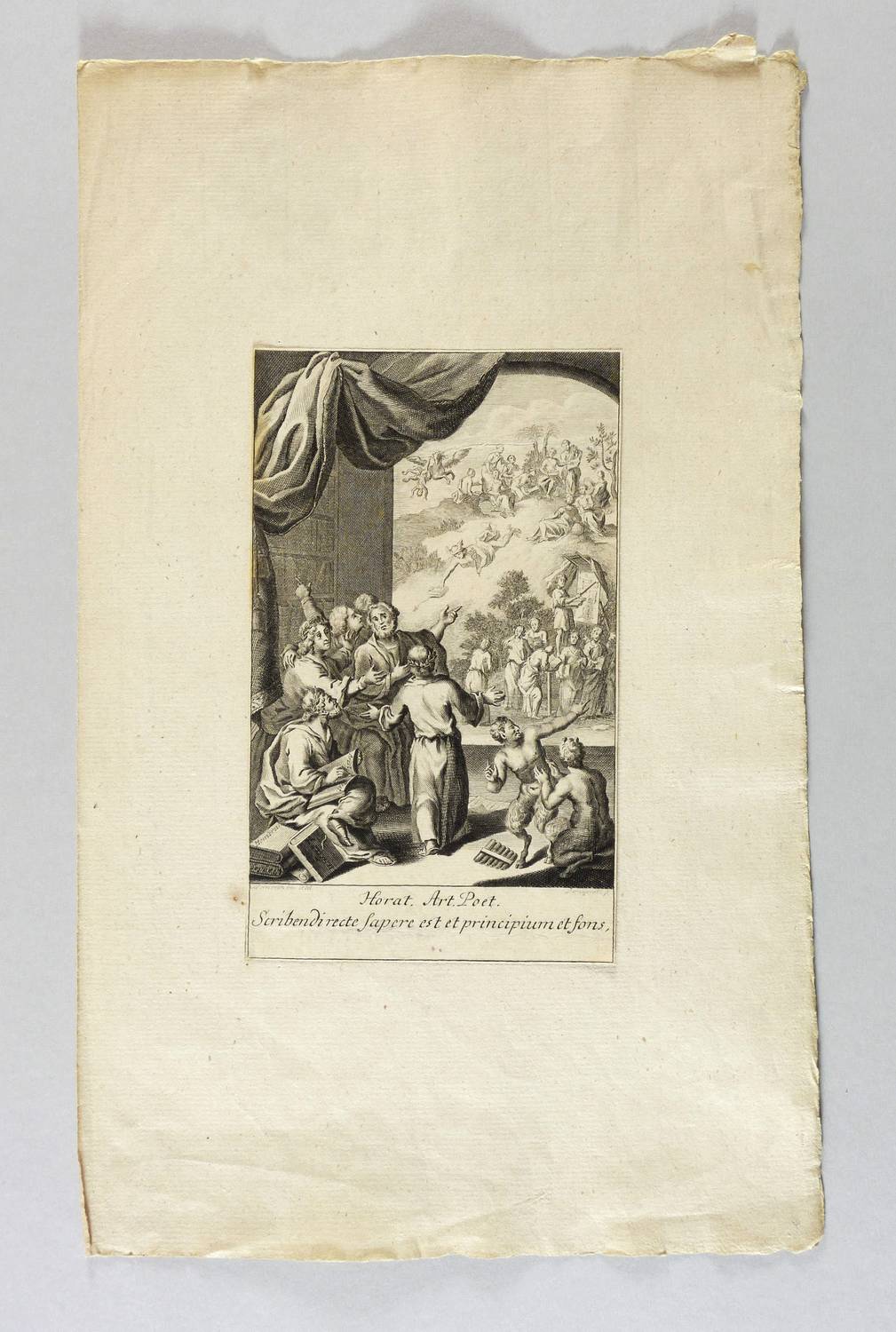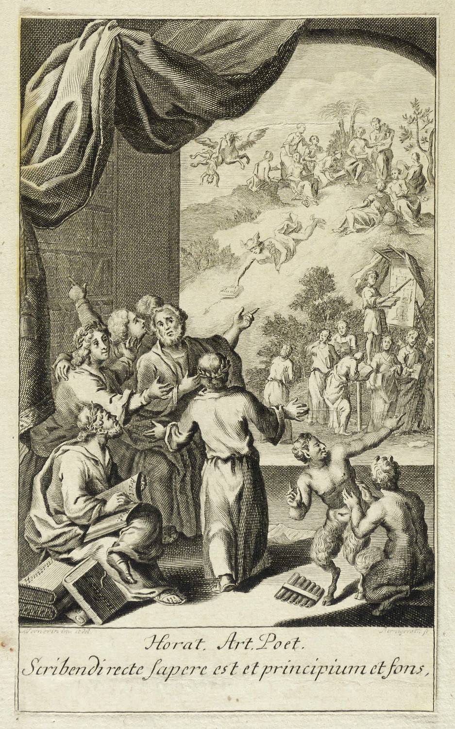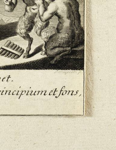 Um 1740. Kupferstich / Linienstich. – Historische Buchillustration, von Johann Martin Bernigeroth. – 15,4 x 10,5 cm (Darstellung), 34,5 x 21 cm (Trägerblatt), 17,6 x 10,5 cm (Blatt).