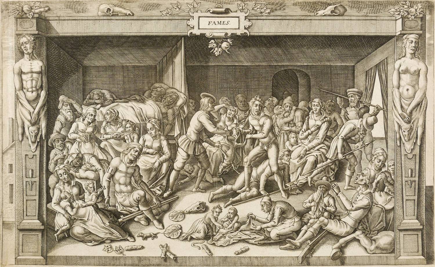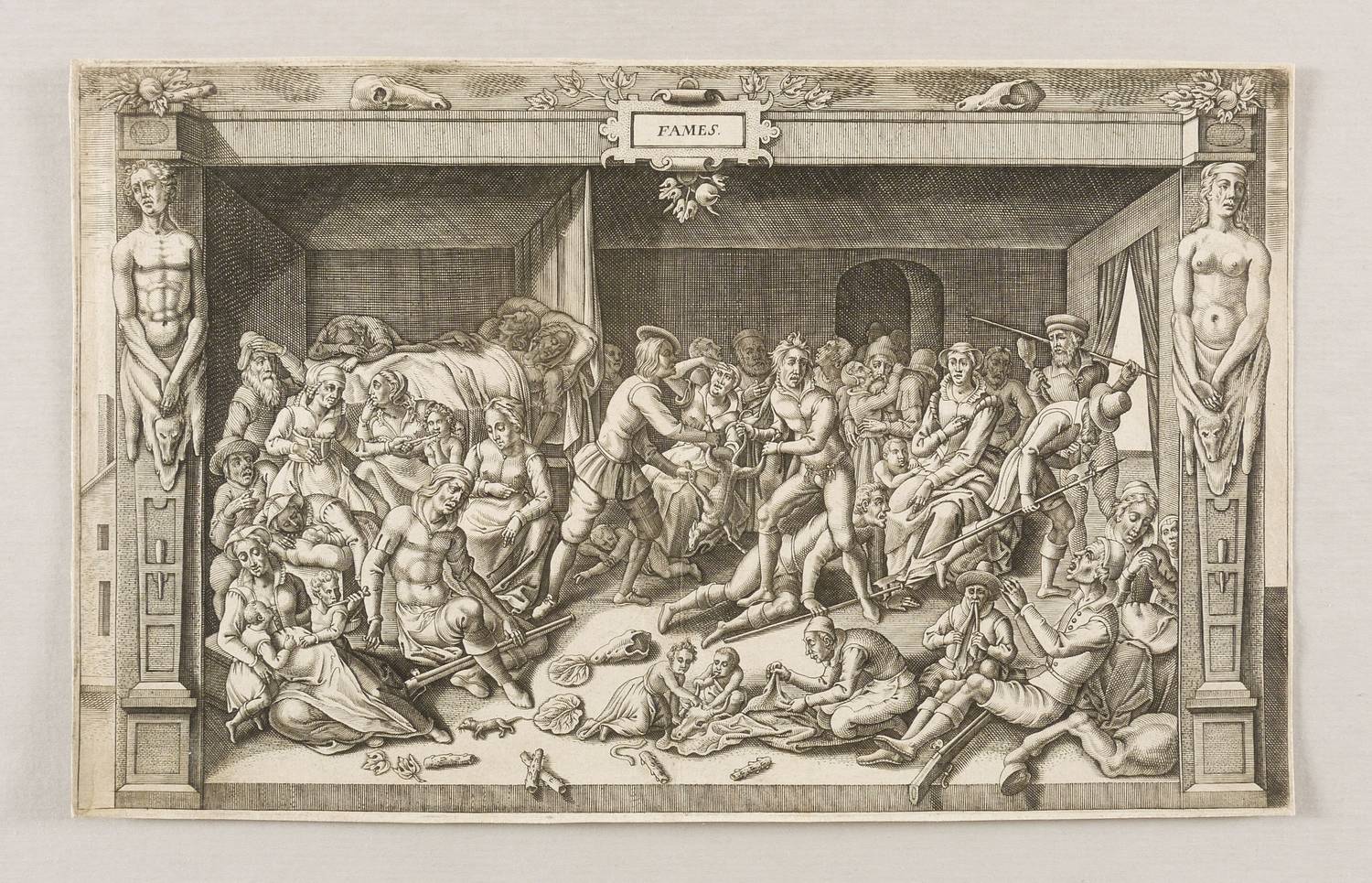 Aus: Beschrijvinge der stad Leyden. Inhoudende 't begin, den voortgang, ende den wasdom der selver : de stichtinghe van de kercken, cloosteren, gasthuysen, ende andere publijcque gestichten, &c. (Leyden: Jan Orlers & Jan Maire Henrick Haestens 1614). – Oben in der Darstellung betitelt. – Blatt einer Folge zur Belagerung von Leiden im Jahre 1574. – Blatt mit schmalem Rand und mittiger vertikaler Bindefalte. Sonst aber guter Zustand.