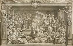 1614. Kupferstich / Radierung. – Historische Buchillustration, von Willem de Haen. – 16,3 x 25,5 cm (Darstellung / Einfassungslinie), 16,8 x 26,3 cm (Blatt).