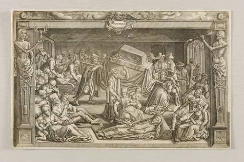 Aus: Beschrijvinge der stad Leyden. Inhoudende 't begin, den voortgang, ende den wasdom der selver : de stichtinghe van de kercken, cloosteren, gasthuysen, ende andere publijcque gestichten, &c. (Leyden: Jan Orlers & Jan Maire Henrick Haestens 1614). – Oben in der Darstellung betitelt. – Blatt einer Folge zur Belagerung von Leiden im Jahre 1574. – Blatt mit schmalem Rand und mittiger vertikaler Bindefalte. Sonst aber guter Zustand.