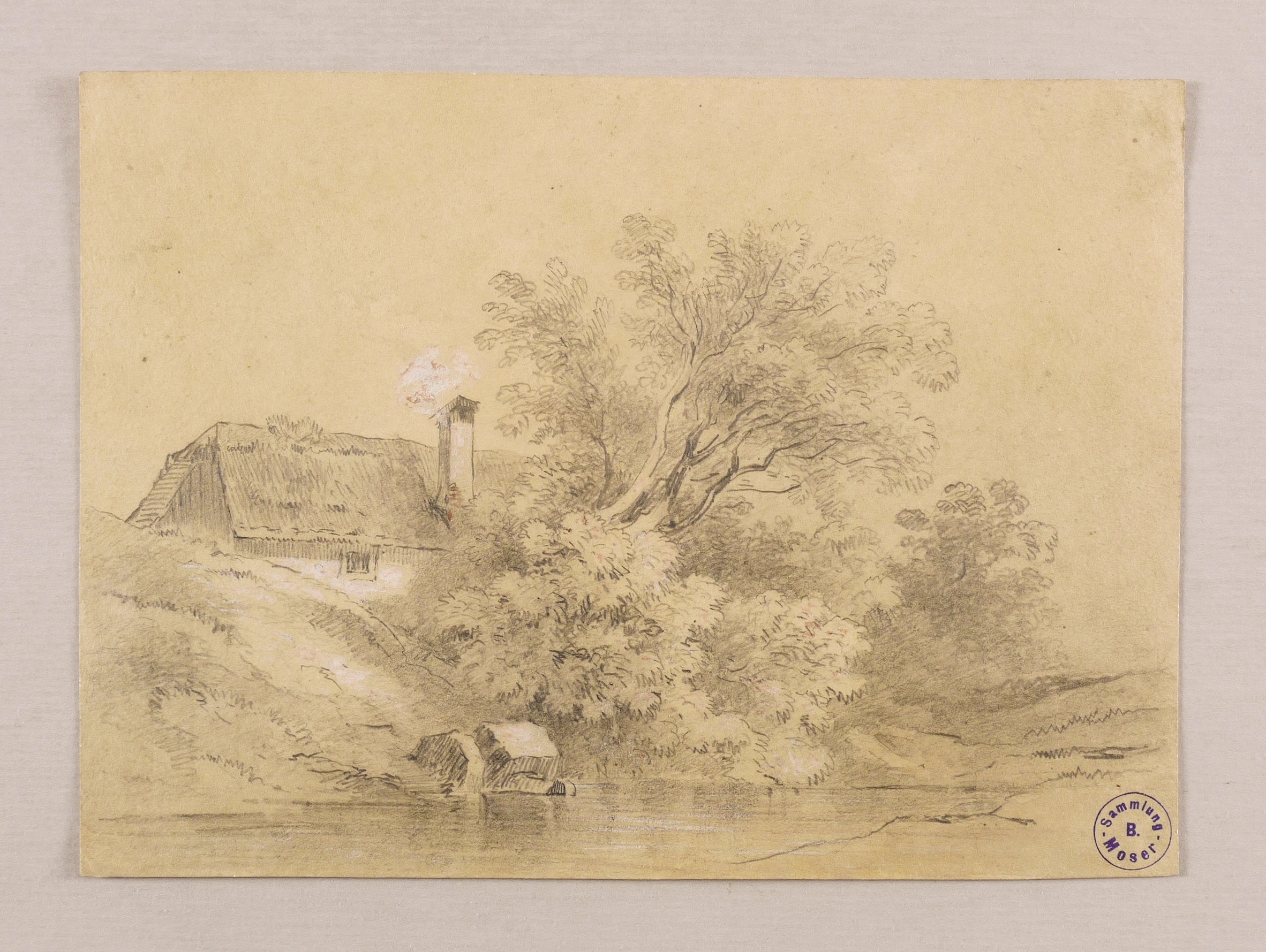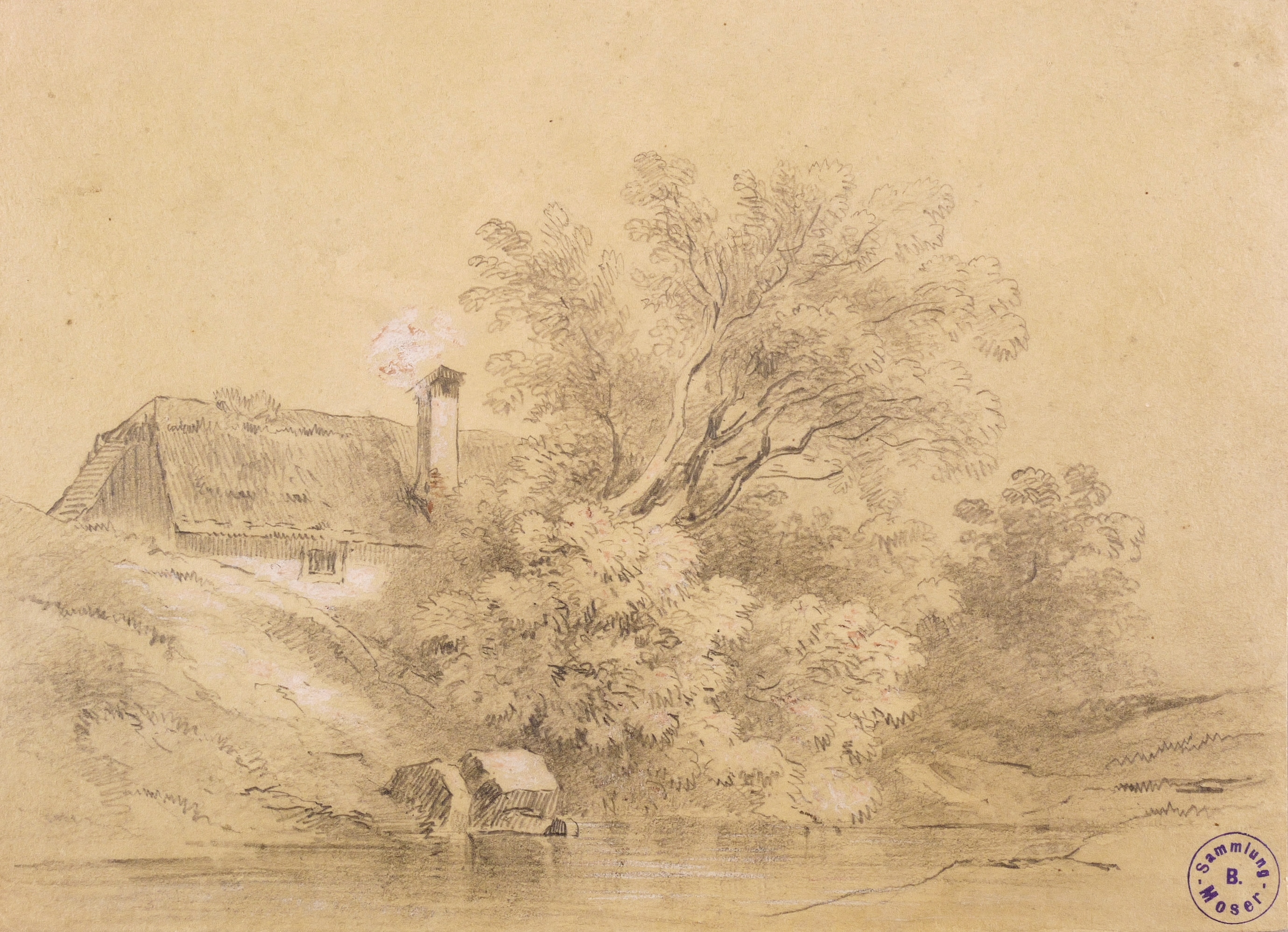 Um 1840. Zeichnung / Bleistiftzeichnung, mit weißer Kreide gehöht, auf gelblichem Karton. – Von Josef Werner. – 22,5 x 16,5 cm (Darstellung / Blatt).