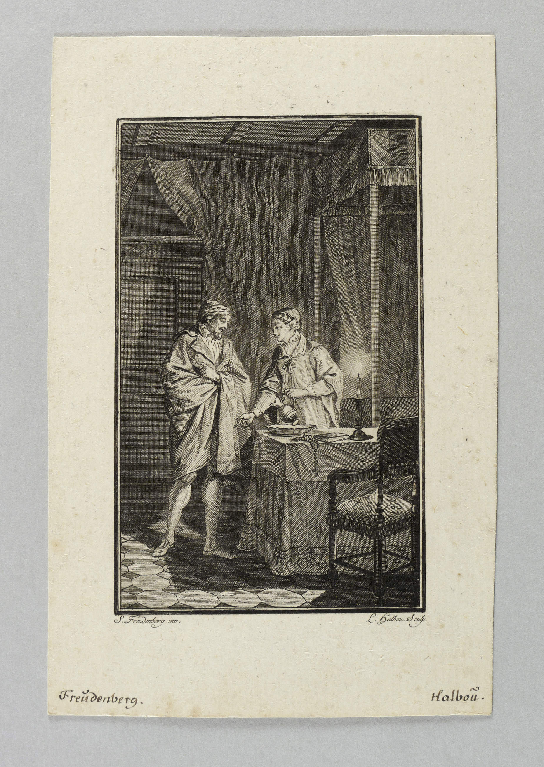 Louis Michel Halbou (1730 - 1800). Französischer Kupferstecher. Schüler von Nicolas-Gabriel Dupuis. Halbou stach vorzugsweise nach François Eisen, Jean-Michel Moreau, Johann Eleazar Schenau und François Boucher.