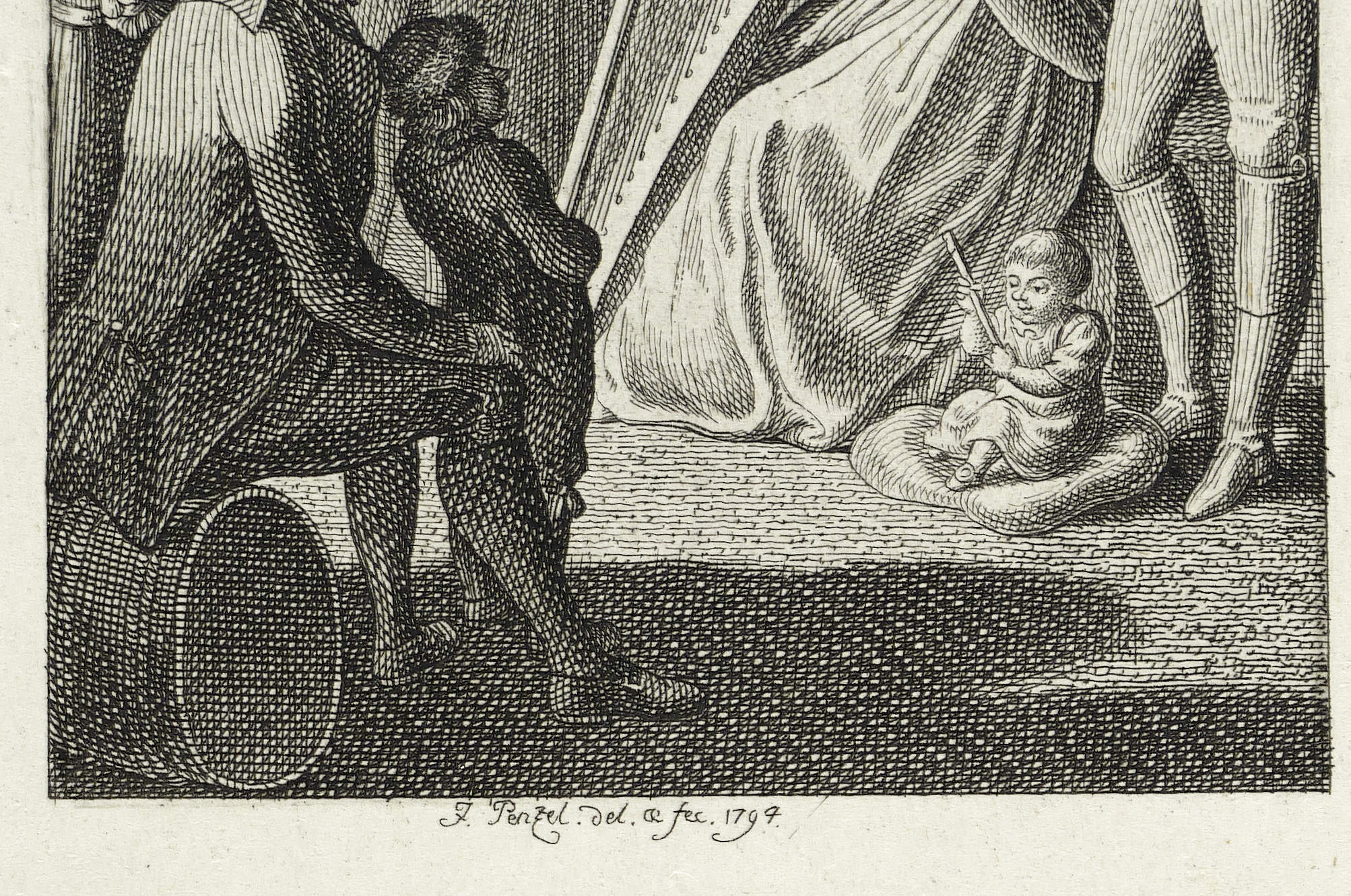 Johann Georg Penzel (1754 Hersbruck bei Nürnberg - 1809 Leipzig). Deutscher Kupferstecher, Zeichner und Maler. Erfuhr Anfangsgründe der Malerei bei einem Künstler namens Reich in Hersbruck. Darauf dann Schüler von Roy in Nürnberg. Erlernte bei Johann Ulrich Schellenberg in Winterthur die Radierkunst. Ab 1783 an der Dresdner Akademie - Umgang mit Anton Graff. Später in Leipzig ansässig. Penzel nach sich insbesondere Chodowiecki zum Vorbild.