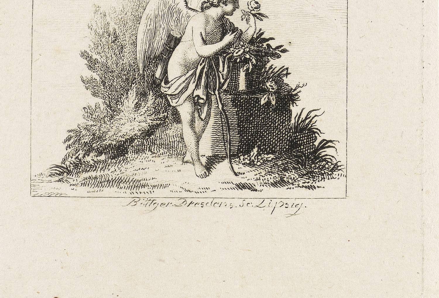 Um 1790. Radierung / Strichätzung. – Von Johann Gottlieb Boettger. – 8,0 x 7,1 cm (Blatt), 7,6 x 6,7 cm (Platte), 4,6 x 4,9 cm (Darstellung / Einfassungslinie).