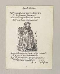 Aus: Franciscus Modius, Gynaeceum, Sive Theatrum mulierum. in quo praecipuarum omnium per Europam in primis, nationum, gentium, popularumque cuiuscumque dignitatis, ordinis, status ... foemineos habitus videre est (Frankfurt: Sigismund Feyerabend 1586). – Oberhalb der Darstellung bezeichnet und umgebender lateinischer Text. – Verso geringe Montagereste. Sonst guter Zustand.