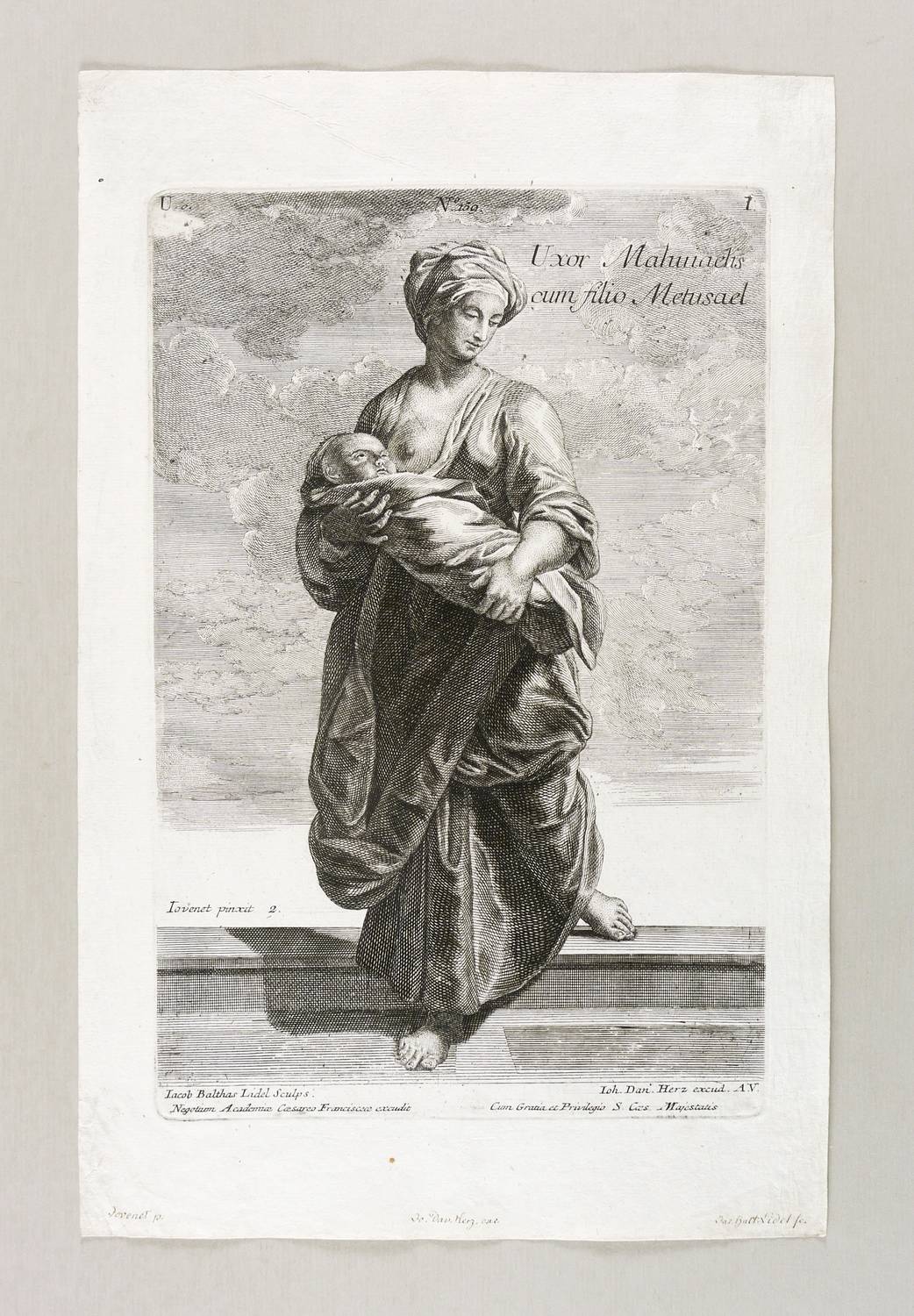 Links unten signiert: ″Iacob Balthas Lidel Sculps.″ Oben rechts in der Darstellung betitelt. Unten rechts Angabe des Verlegers: ″Ioh. Dan. Herz excud. A.V.″ – Blatt Nr.: 159 aus der Folge: ″Figuren aus Mahlereyen der Berühmtesten Italiänischen und Frantzösischen Virtuosen″ oder auch ″Figures tirées des tableaux de plus celebres Peintres d'Italie et de France.″ – Untere linke Ecke leicht knickspurig. Sonst aber guter Zustand.