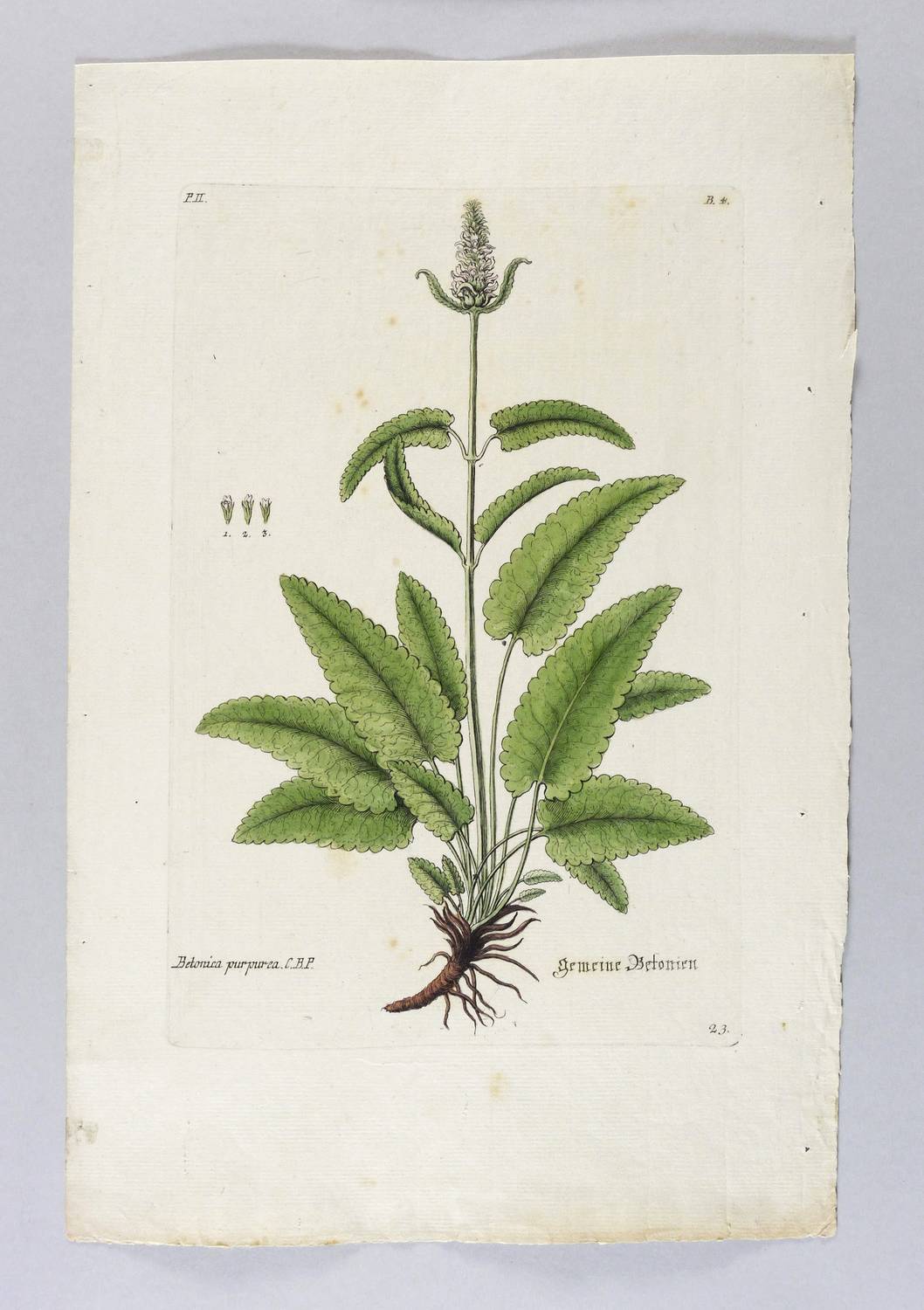 Lippenblütler. – Echte Betonie (Betonica officinalis). – „Betonica purpurea. C.B.P. Gemeine Betonien”.