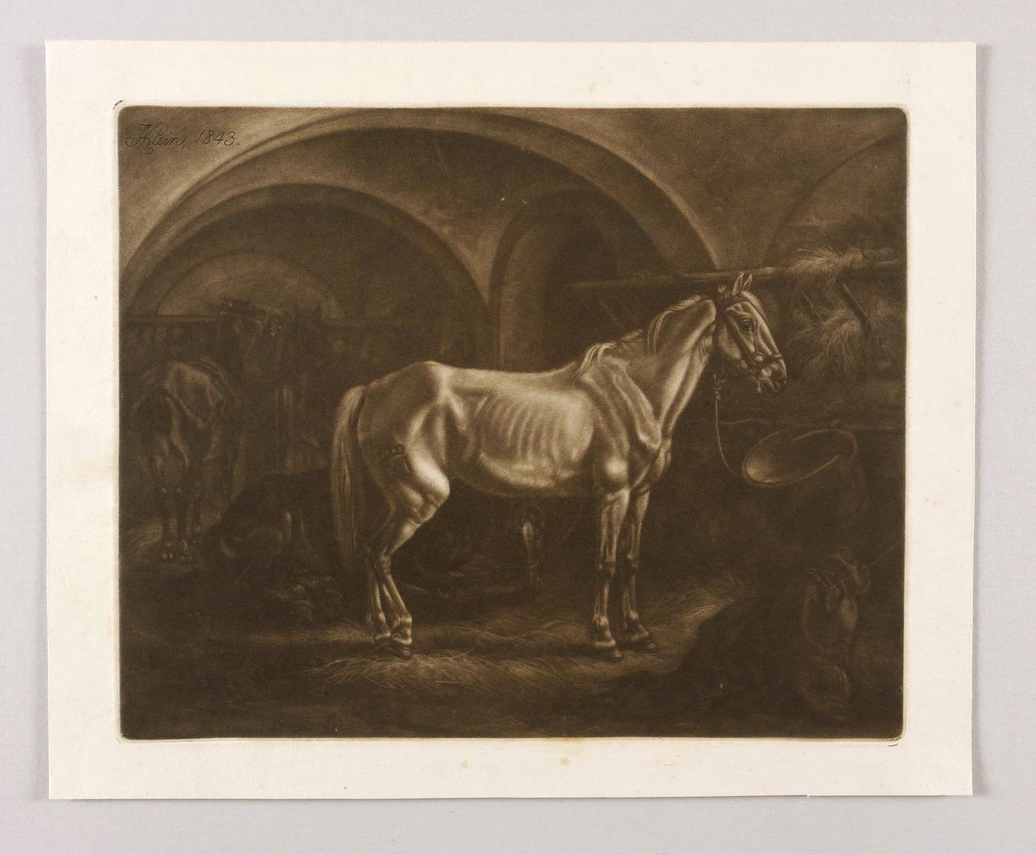 Johann Adam Klein (1792 Nürnberg - 1875 München). Deutscher Maler und Radierkünstler des Biedermeier. Erster Zeichenunterricht mit 8 Jahren bei dem Maler Georg Christoph von Bemmel. Ab 1805 Lehrling im Atelier des Kupferstechers Ambrosius Gabler. 1811 Schüler der von Gustav Philipp Zwinger geleiteten Nürnberger Zeichenschule. 1811-18 Studium an der Kunstakademie in Wien. Während einer Reise an Rhein und Main 1815 Begegnung mit dem Werk des Malers Wilhelm von Kobell. 1818 Reise ins Salzkammergut mit Johann Christoph Erhard, den Brüdern Friedrich Philipp und Heinrich Reinhold und Ernst Welker. 1819/20 Italienaufenthalt. 1839 Umsiedelung nach München und Heirat der Tochter des Kupferstechers Wolf. Mit seinen zahlreichen Tierstücken zählt Klein zu den wichtigsten Radierkünstlern des frühen 19. Jahrhunderts.