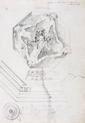 Rechts oben in Bleistift bezeichnet und datiert: ″Rosette aus Sala Regia im Vatikan. 15. Februar 1859″. – Aus einem Skizzenbuch entnommen. – Sehr schön erhalten. Linker Rand mit Bindungsspuren. Sehr guter Zustand.