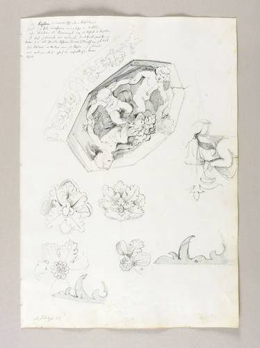 Links unten in Bleistift datiert: ″15. Febrajo 59″. – Aus einem Skizzenbuch entnommen. – Sehr schön erhalten. Linker Rand mit Bindungsspuren. Sehr guter Zustand.