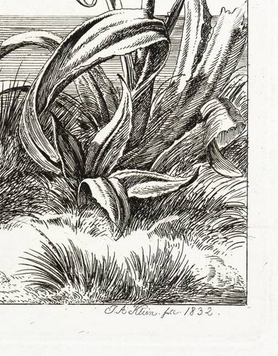 Johann Adam Klein (1792 Nürnberg - 1875 München). Deutscher Maler und Radierkünstler des Biedermeier. Erster Zeichenunterricht mit 8 Jahren bei dem Maler Georg Christoph von Bemmel. Ab 1805 Lehrling im Atelier des Kupferstechers Ambrosius Gabler. 1811 Schüler der von Gustav Philipp Zwinger geleiteten Nürnberger Zeichenschule. 1811-18 Studium an der Kunstakademie in Wien. Während einer Reise an Rhein und Main 1815 Begegnung mit dem Werk des Malers Wilhelm von Kobell. 1818 Reise ins Salzkammergut mit Johann Christoph Erhard, den Brüdern Friedrich Philipp und Heinrich Reinhold und Ernst Welker. 1819/20 Italienaufenthalt. 1839 Umsiedelung nach München und Heirat der Tochter des Kupferstechers Wolf. Mit seinen zahlreichen Tierstücken zählt Klein zu den wichtigsten Radierkünstlern des frühen 19. Jahrhunderts.