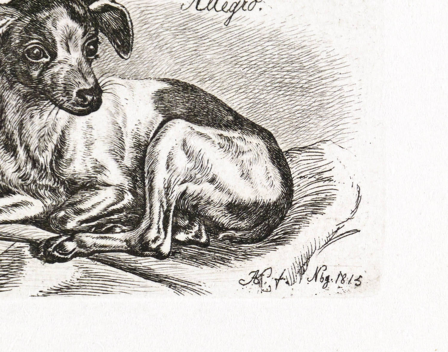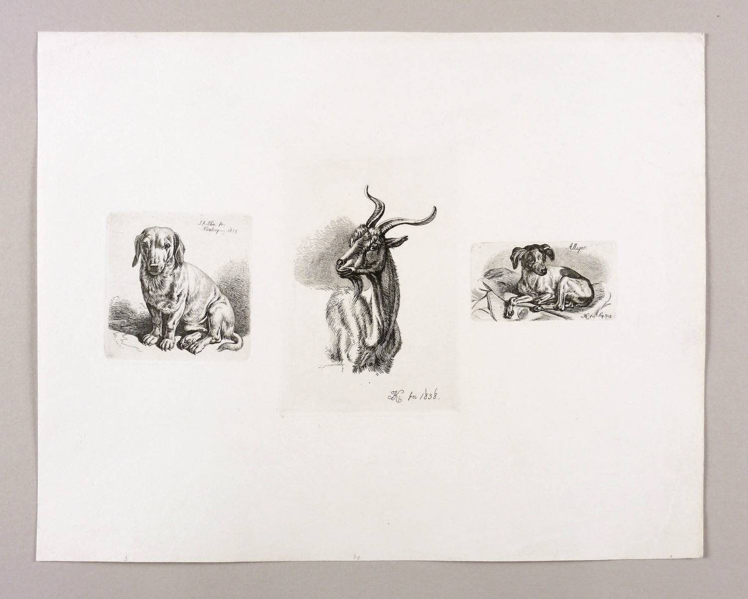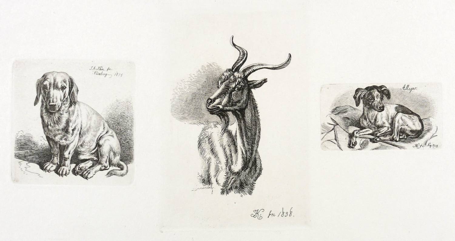 Klein, Johann Adam. – Drei Radierungen. – „Dachshund. Vordertheil einer Ziege. Allegro”.