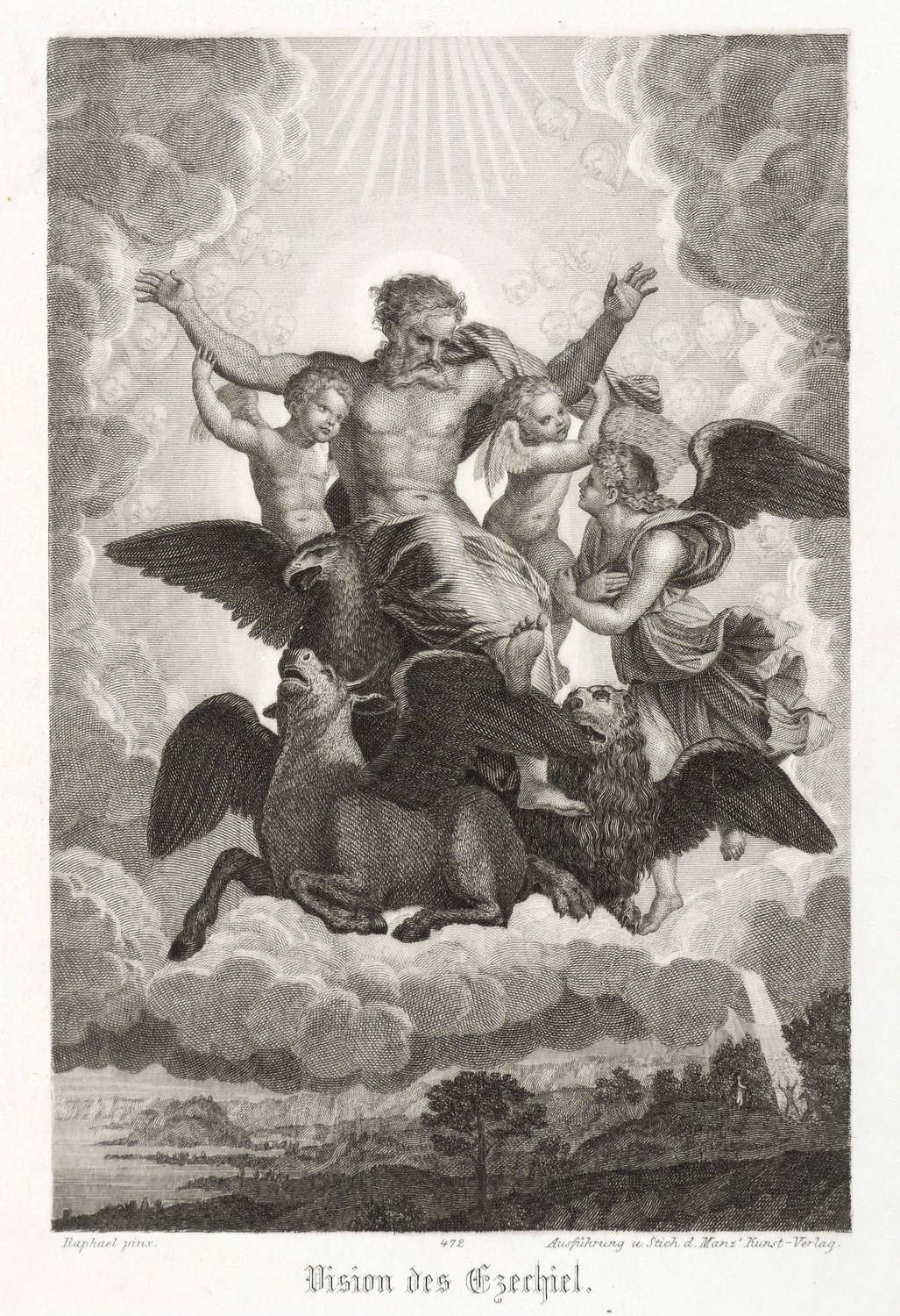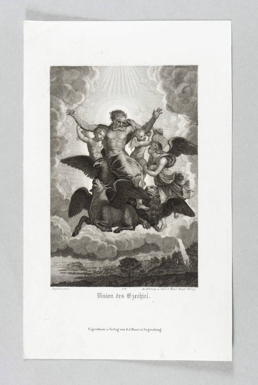 In der Platte rechts unten signiert: "Ausführung und Stich d. Manz' Kunst-Verlag." Dazu nummeriert: "472". – Sehr guter Erhaltungszustand.