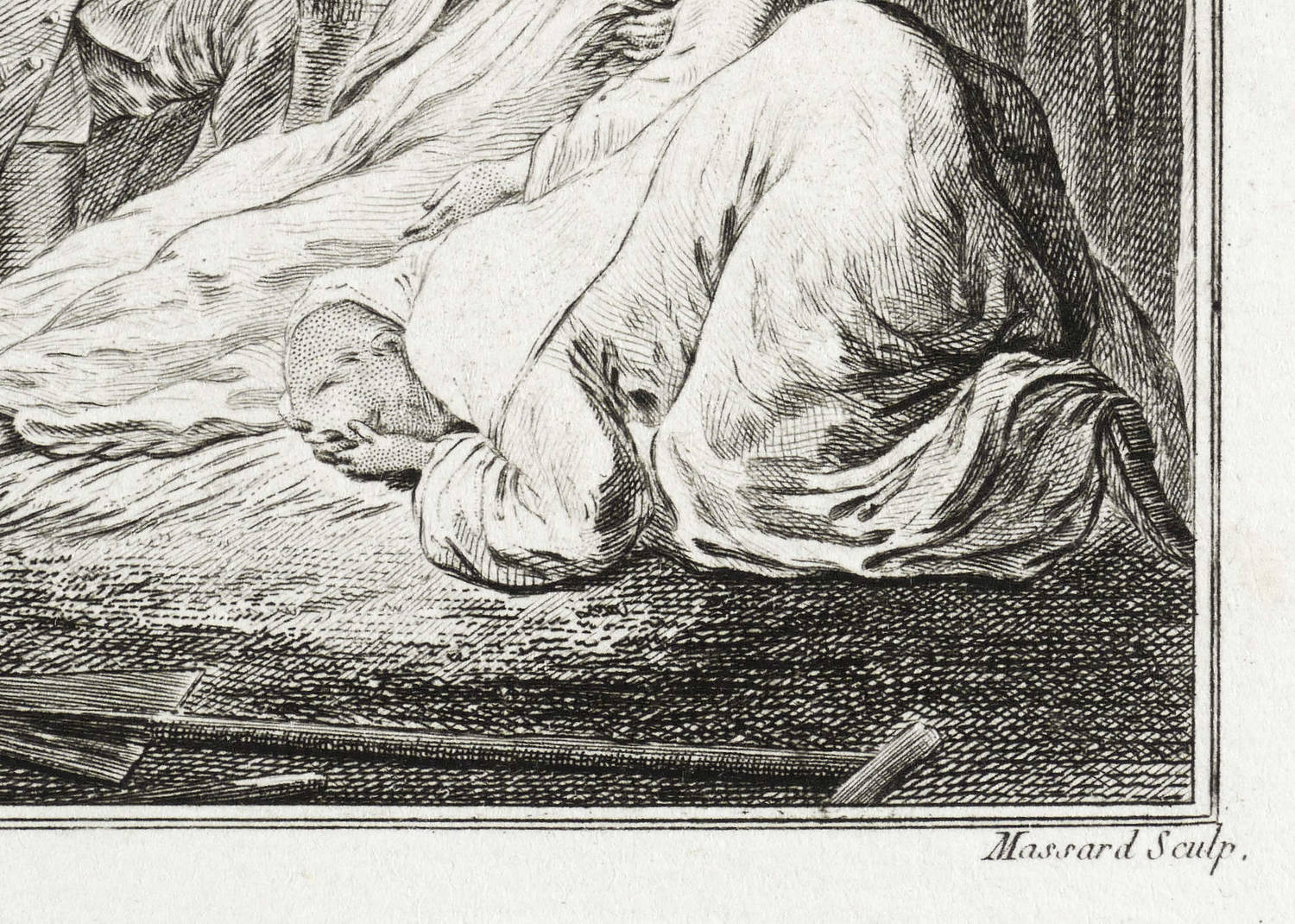 1768. Radierung / Strichätzung. – Historische Buchillustration, von Jean Massard. – 14,1 x 9,0 cm (Darstellung / Einfassungslinie), 20,0 x 13,4 cm (Platte), 21 x 15 cm (Blatt).